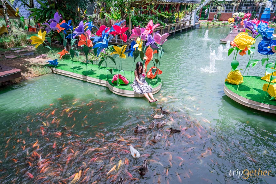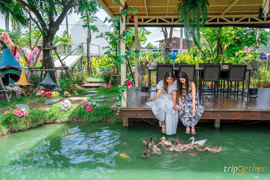 สามารถให้อาหารปลาและเหล่าน้องเป็ดได้ด้วยนะ นั่งให้อาหารมุมนี้ให้ฟีลเจ้าหญิงสุด