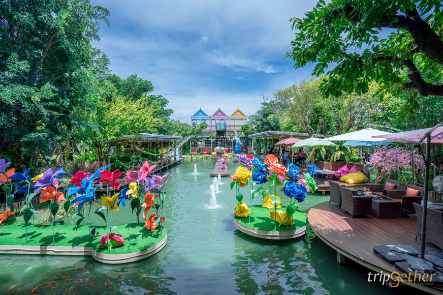 มีดอกเลาหลากสีสันตามทางเดิน ถ่ายรูปได้เก๋ๆ
