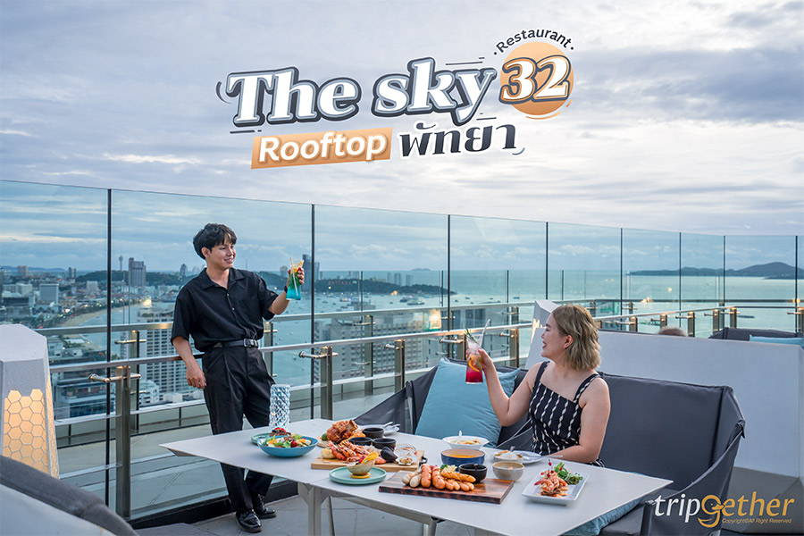 The sky 32 Restaurant Rooftop พัทยาสุดหรูอยู่บนชั้น 32 ของโรงแรม Grande Centre Point Pattaya ที่เป็นจุดหมายปลายทางของนักท่องเที่ยวทั่วโลก ตั้งอยู่ใกล้กับห้างสรรพสินค้า Terminal 21 ใจกลางพัทยาเหนือ ได้ชมวิวหาดพัทยาแบบพาโนรามา พร้อมกับแสงพระอาทิตย์ที่ตกกระทบกับผิวน้ำทะเลในยามเย็นที่กำลังลับขอบฟ้า พาทุกคนดื่มด่ำไปกับอาหารแสนอร่อย จิบเครื่องดื่มแบบชิลล์ๆ นั่งมองท้องฟ้าในมุมที่สวยที่สุดของพัทยา บอกเลยบรรยากาศสุดพิเศษแบบนี้เหมาะกับการพาครอบครัว คนรัก และแก๊งค์เพื่อนมานั่งชิลล์ในวันหยุดนี้มาก