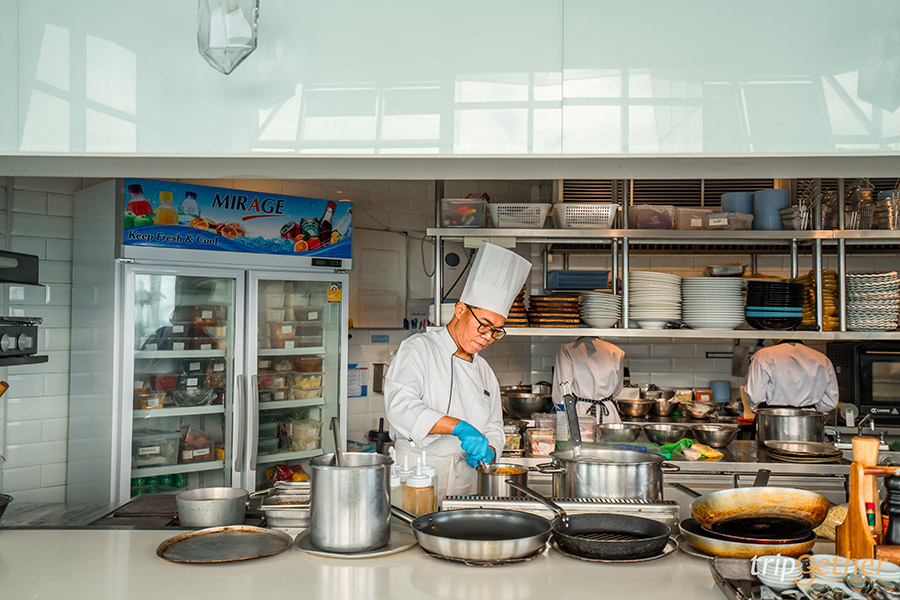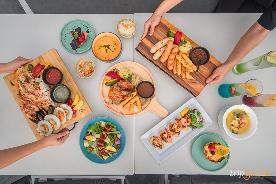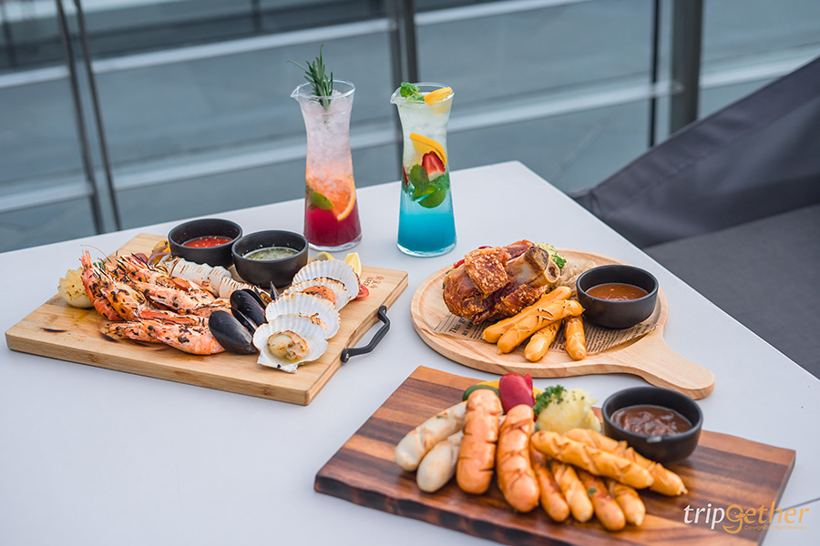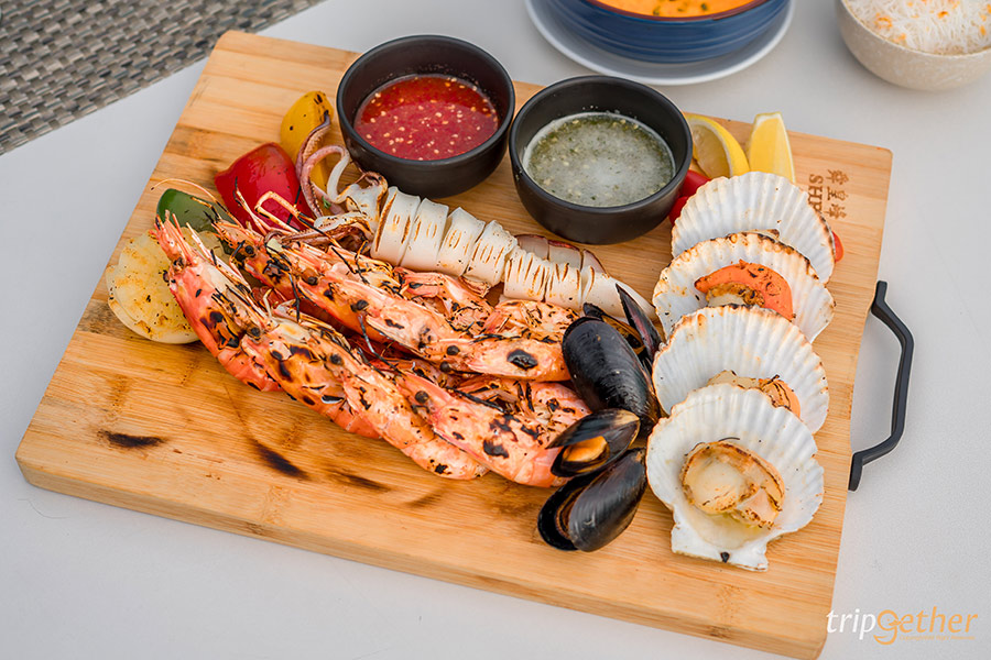 ใครชอบอาหารทะเลห้ามพลาดกับเมนู Seafood Platter เป็นเซ็ตรวมอาหารทะเล มีทั้ง หอยเชลล์ หอยแมลงภู่ กุ้ง หมึก ที่เสิร์ฟมาพร้อมกับน้ำจิ้มซีฟู้ดสองแบบ แบบแรกคือน้ำจิ้มซีฟู้ดพริกแดง เหมาะสำหรับใครชอบรสจัดจ้าน ถึงเครื่องเพราะมีความเผ็ดแซ่บ และน้ำจิ้มซีฟู้ดพริกเขียว เหมาะสำหรับใครที่ชอบรสชาติกลมกล่อม มีความเผ็ดน้อยกว่าน้ำจิ้มซีฟู้ดพริกแดง ราคาเริ่มต้นที่ 1,150 บาท