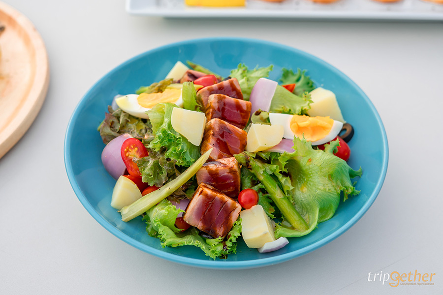 ต่อด้วยเมนูเอาใจสายสุขภาพกันกับ Grill Tuna with Balsamic Dressing ที่เสิร์ฟมาพร้อมกับผักแบบเน้นๆ คู่กับทูน่าที่ย่างมาอย่างดีทั้งหอมและชุ่มฉ่ำ พร้อมกับหน่อไม้ฝรั่งย่างตัดด้วยน้ำสลัดรสชาติกลมกล่อม ลงตัวสุดๆ ราคาอยู่ที่ 420 บาท