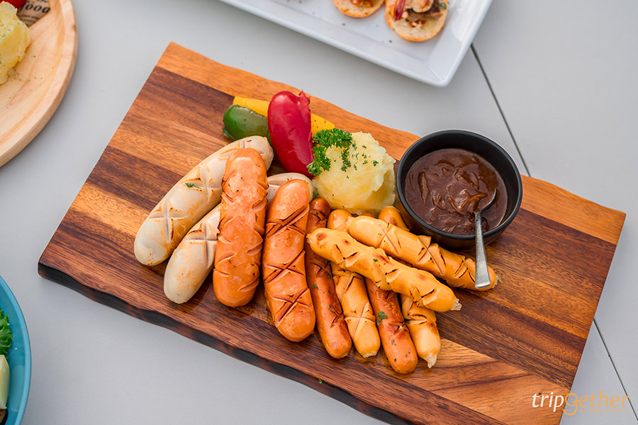 Mix Grilled Sausages เป็นเซ็ตรวมไส้กรอกย่าง มีทั้งไส้กรอกหมู ไก่ และเนื้อ ที่ทั้งหอมเนื้อเนียนให้สัมผัสนุ่มกลมกล่อม เสิร์ฟมาพร้อมกับมันบดนุ่มๆ และซอสหัวหอมสูตรเด็ดของทางร้าน กินแล้วเข้ากันได้ดีกับไส้กรอก เป็นความหลากหลายที่ลงตัวมาก ราคาเริ่มต้นที่ 850 บาท