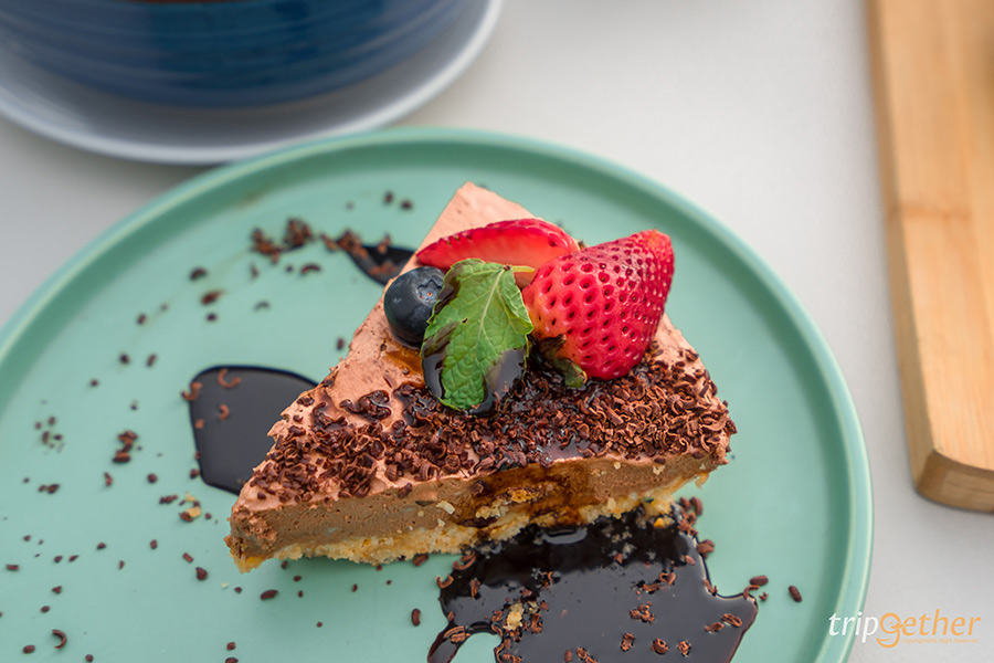 ใครเป็นช็อกโกแลตเลิฟเวอร์ต้องลองเมนูนี้เลย ช็อกโกแลตชีสเค้ก รสชาติเข้มข้น เนื้อเค้กแน่นหนึบ หอมช็อกโกแลตมากตัดด้วยรสชาติที่เป็นเอกลักษณ์ที่เป็นชีส เป็นอีกเมนูที่ห้ามพลาด ราคา 140 บาท