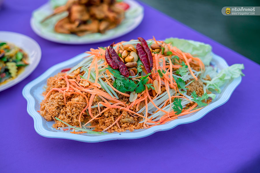 ยำปลาดุกฟู เสิร์ฟมาพร้อมกับน้ำจิ้มสูตรเด็ดของที่นี่
