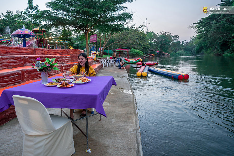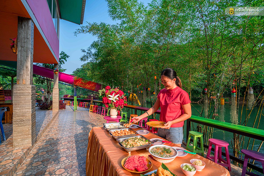 ยังไม่หมดเพียงเท่านี้นะ ที่นี่ยังมีบริการห้องอาหารให้คุณได้อิ่มอร่อยกับเมนูอาหารพื้นบ้าน ท่ามกลางบรรยากาศชิลล์ๆ ริมแม่น้ำกันอีกด้วย โดยมีเมนูแนะนำเป็น ปลานิลเขื่อนทอดกระเทียม ยำปลาดุกฟู แกงป่าไก่บ้าน ไก่ทอดเกลือ ผัดฉ่าปลากดคัง และล้างปากด้วยผลไม้ตามฤดูกาล