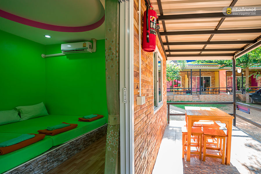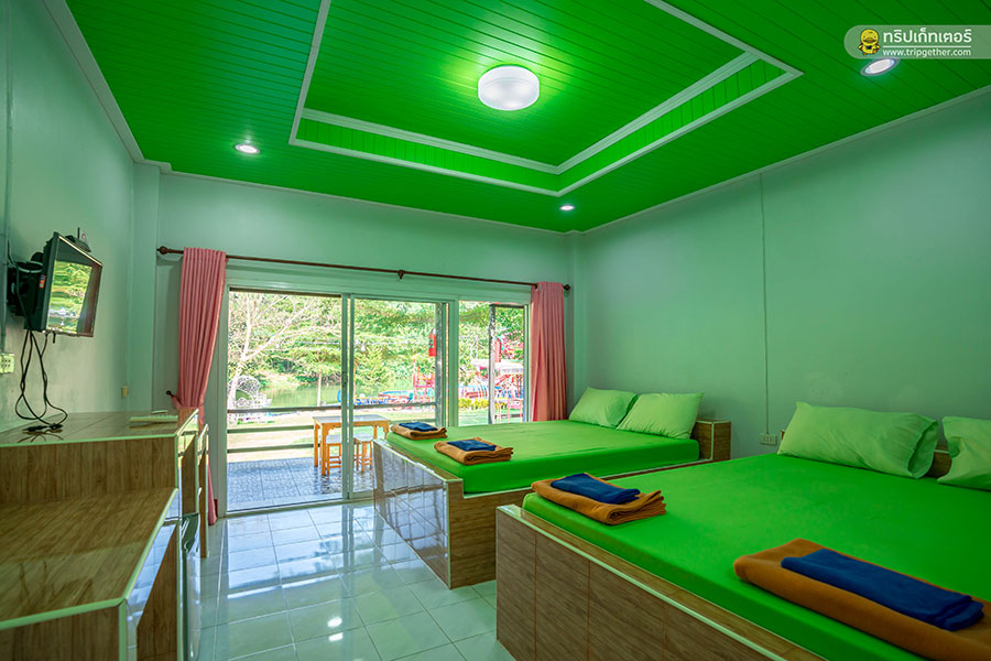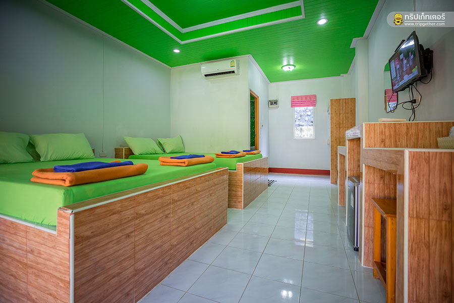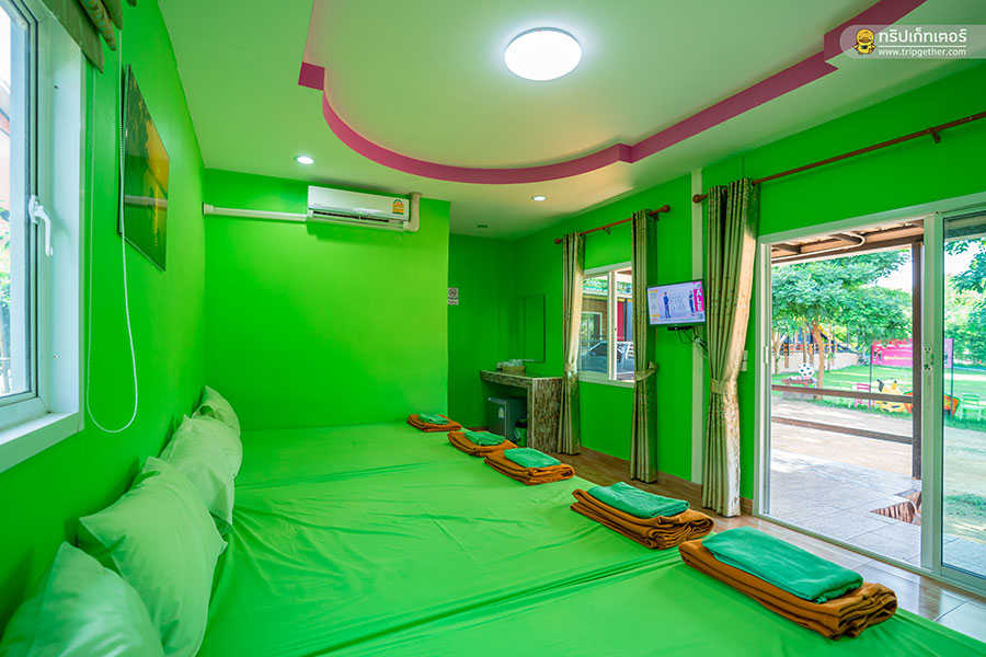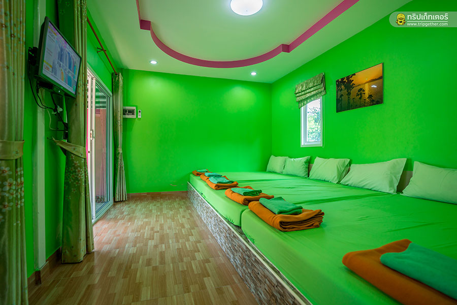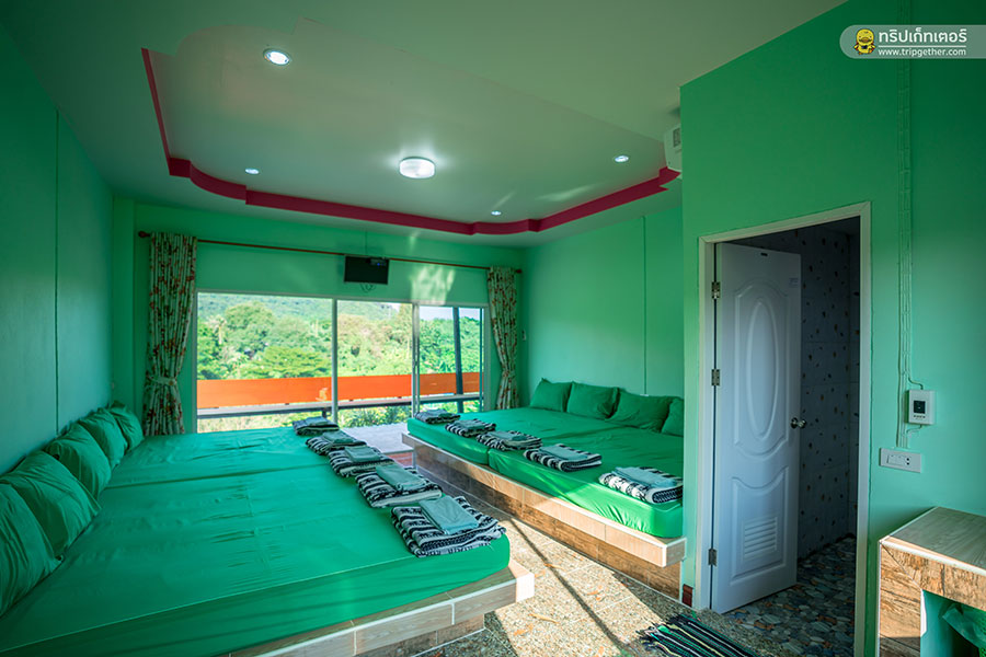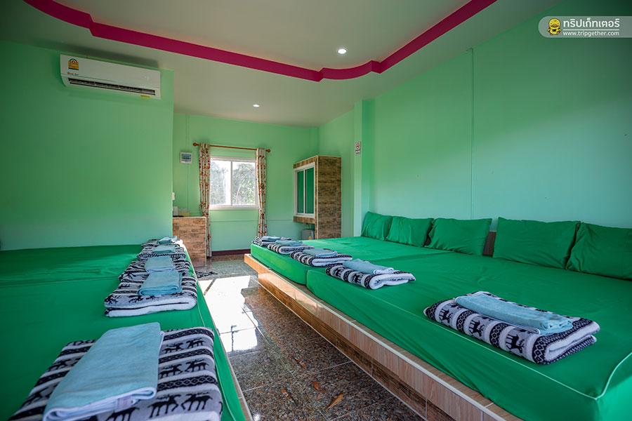 ภายในห้องพักมีเตียงนอนขนาดใหญ่เรียงราย ใครที่มาเป็นกลุ่มเพื่อนรับรองห้องนี้ตอบโจทย์ความต้องการอย่างแน่นอน