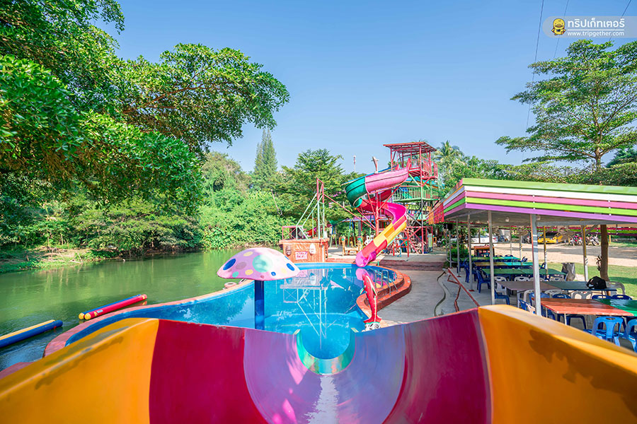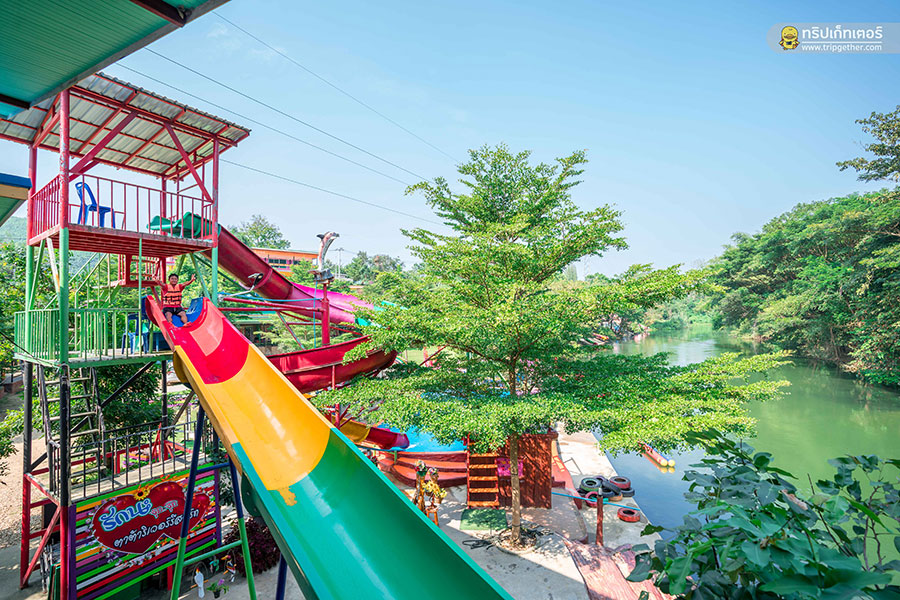 เสียวกันต่อกับสไลด์เดอร์ที่มีให้เลือกทั้งแบบสไลด์ลงในสระว่ายน้ำ และลงในแม่น้ำเพชรบุรีกันเลย