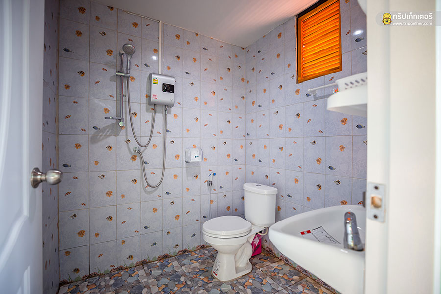 ห้องน้ำตกแต่งได้อย่างสวยงาม มีเครื่องทำน้ำอุ่นให้คุณได้อาบน้ำกันสบายตัว