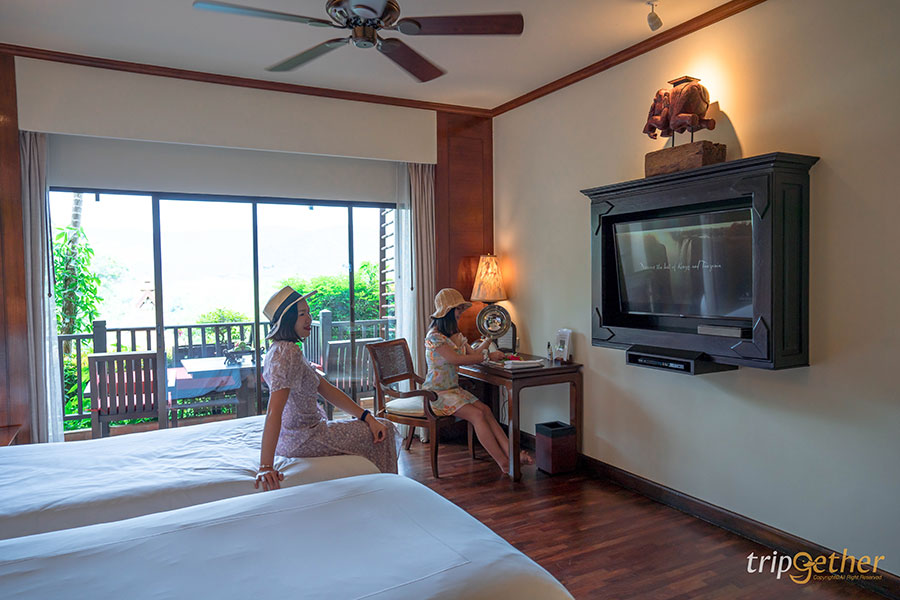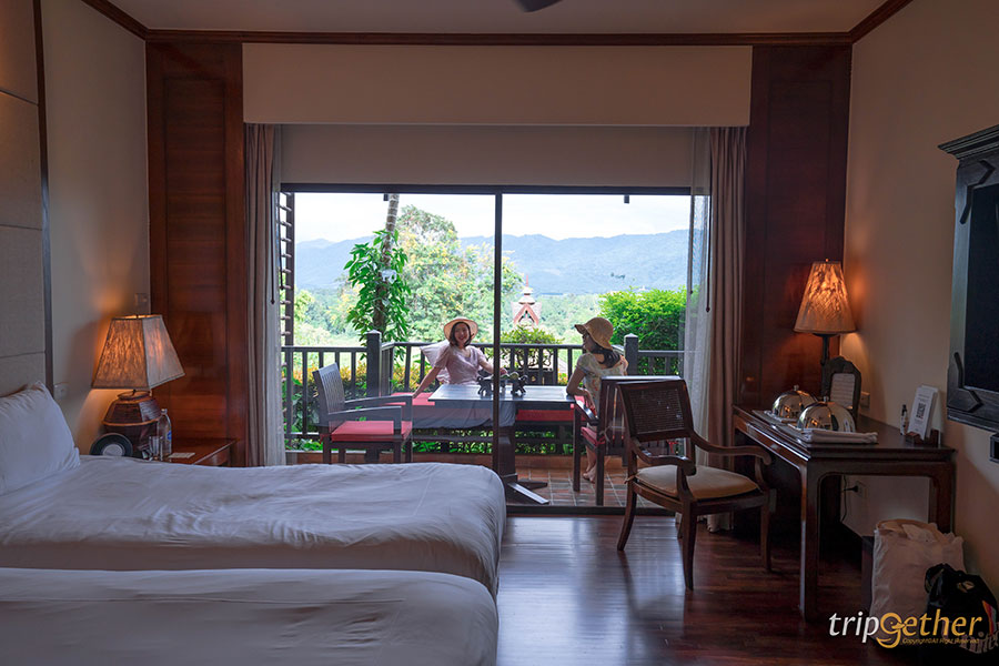 ปิดท้ายกันด้วยห้องพัก Deluxe Three Country View ห้องพักขนาดกำลังดีสำหรับสองคน เหมาะชวนเพื่อนสาวไปนอนพักผ่อนท่ามกลางบรรยากาศสบายๆ โอบล้อมไปด้วยขุนเขาและวิวสวยของทั้ง 3 ประเทศ