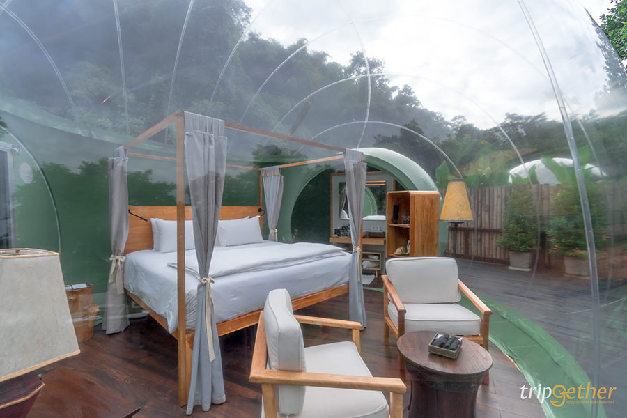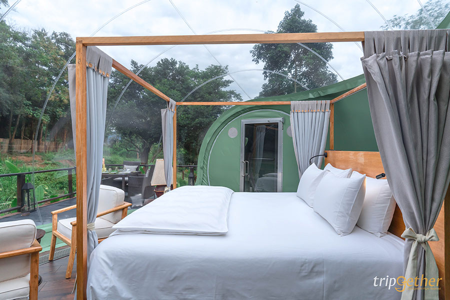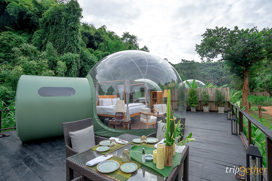 Price: Jungle Bubbles ราคาเริ่มต้น 17,000 บาท/คืน/รวมชุดปิกนิกอาหารมื้อดินเนอร์และมินิบาร์