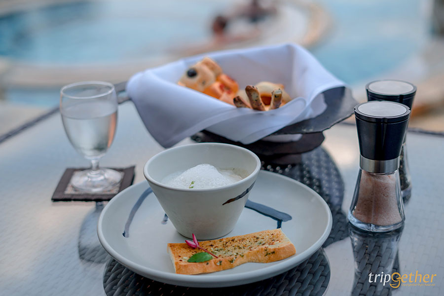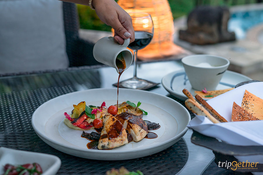 เที่ยวกันจนเพลินรู้ตัวอีกทีก็ได้เวลาอาหารเย็นแล้ว วันนี้เราเลือกรับประทานเมนูอาหารอิตาเลียนที่ทางรีสอร์ทรังสรรค์มาอย่างพิถีพิถัน เริ่มต้นที่ Suprema di Pollo เมนูอกไก่ราดซอสสูตรเด็ด รสสัมผัสนุ่มละมุน หอมเครื่องเทศ