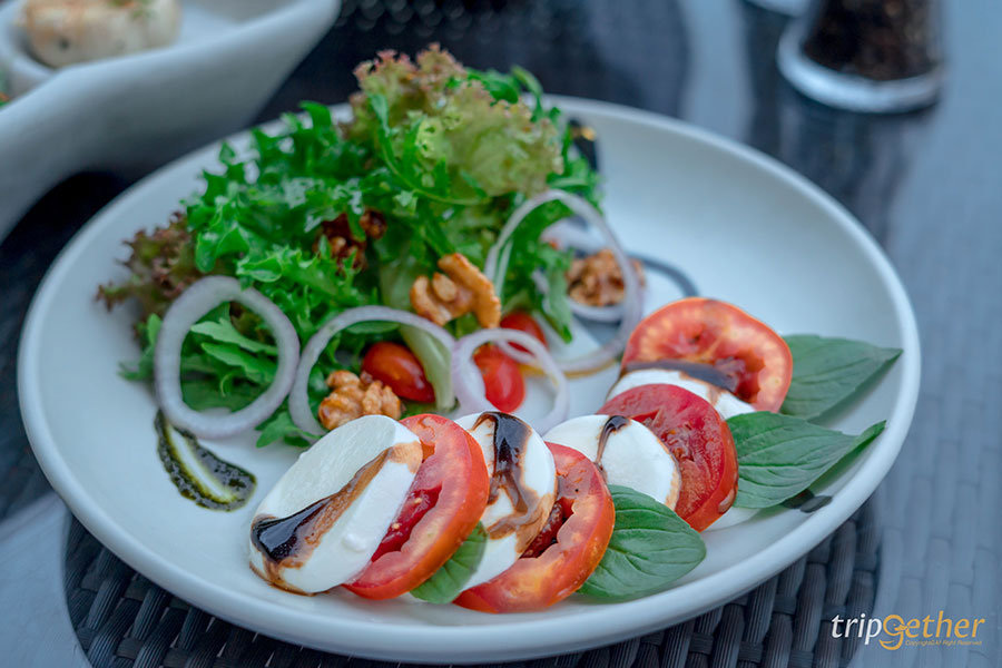 Insalata Primavera สลัด Fresh mozzarella cheese เสิร์ฟคู่มากับผักสลัดและมะเขือเทศ