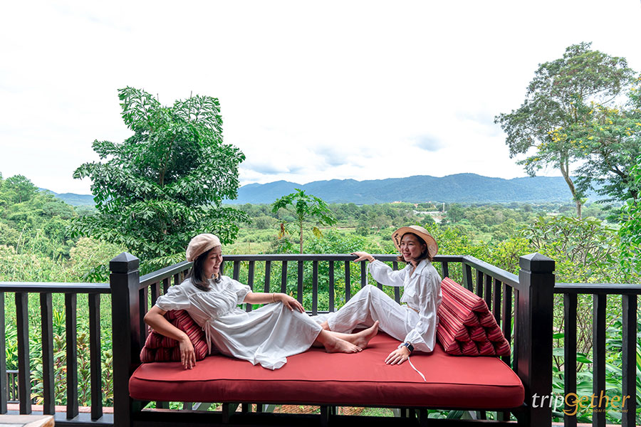 สำหรับมุมพักผ่อนสามารถเลือกนั่งชิลล์ๆ บริเวณระเบียงห้องพัก ชมวิวสวยพร้อมดื่มด่ำกับบรรยากาศของธรรมชาติได้แบบ 180 องศา