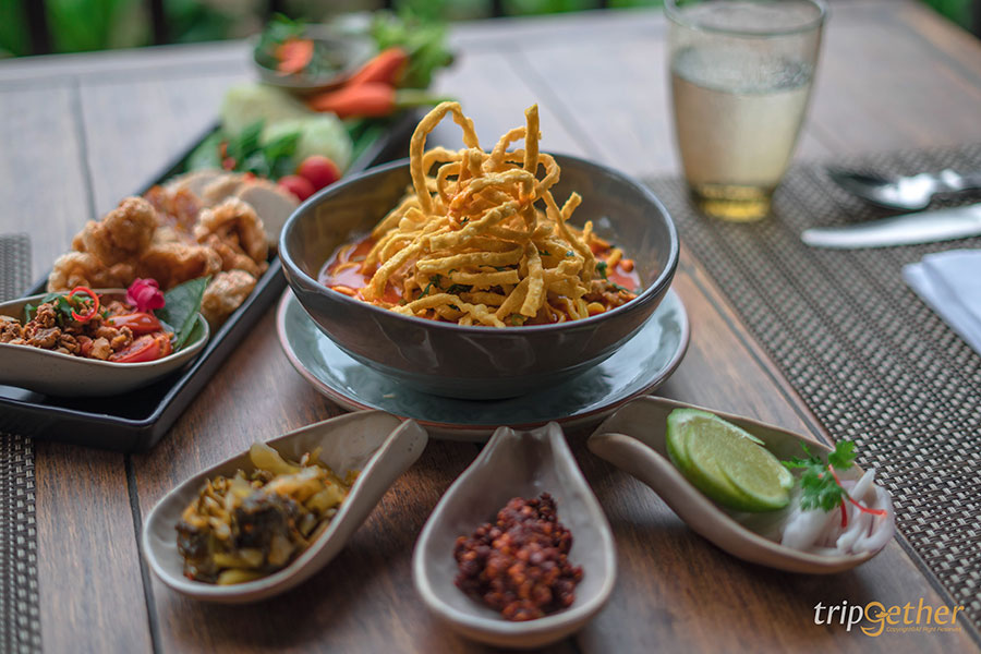 เดินทางไกลมาเที่ยวเชียงรายก็ชวนให้นึกถึงอาหารเหนือ ขอพาเพื่อนๆ แวะมารับประทานอาหารกลางวันกันที่ ห้องอาหาร Sala Mae Nam ห้องอาหารที่นี่เสิร์ฟอาหารแบบ all-day dining เปิดให้บริการอาหารกลางวันในช่วงเวลา 11.30 – 14.30 น.