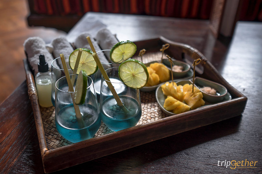 เดินทางเข้ามาถึงก็ได้รับการต้อนรับอันแสนอบอุ่นด้วย Welcome Drink น้ำอัญชันมะนาวและสับปะรดสด