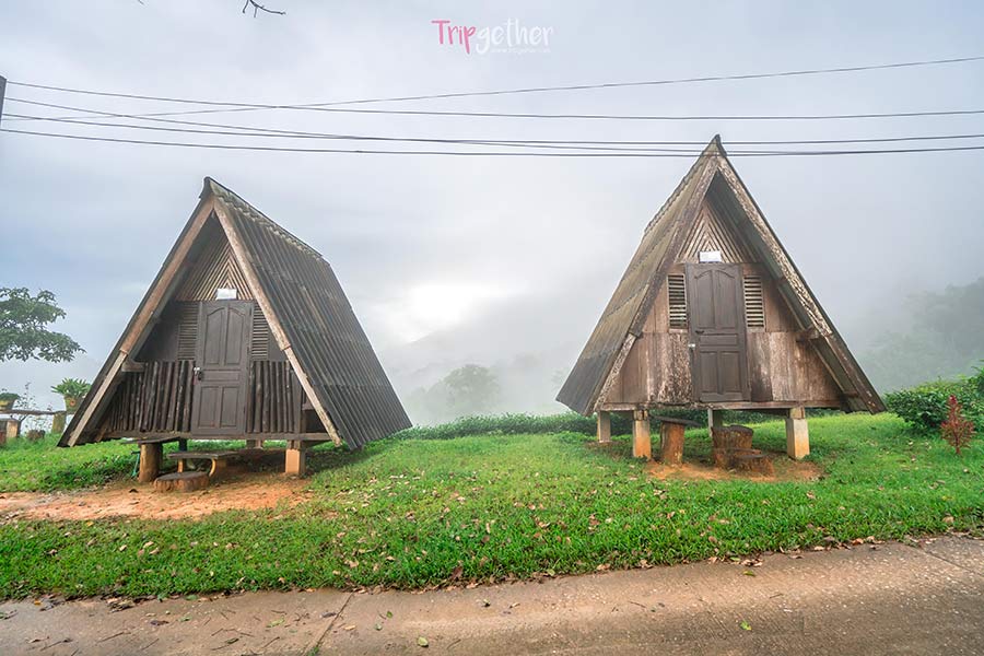 ถัดไปอีกนิดจะมีบ้านไม้ทรงสามเหลี่ยมอีก 2 หลังให้บริการสำหรับ 2 คน ราคาห้องละ 500 บาท ความเก๋ไก๋ของห้องที่นี่ ที่เห็นแว้บแรกต้องสะดุดตาทันทีคือห้องน้ำแบบม่านกั้น เป็นห้องพักที่เหมาะสำหรับคู่รัก คู่เพื่อนสนิทมากๆ ถึงกล้าเข้าพักห้องนี้ก็ว่าได้