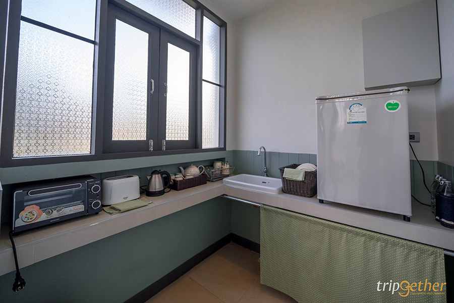อีกทั้งยังมีโซนครัวเล็กๆ ไว้สำหรับเตรียมมื้ออาหารชิลล์ๆ ได้อย่างสะดวกและรวดเร็ว