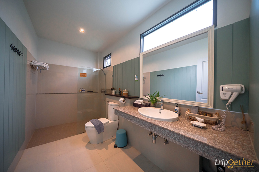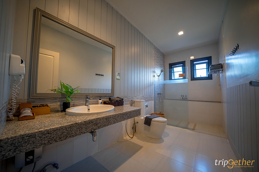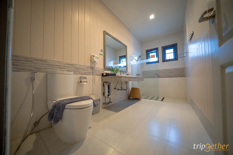 ห้องน้ำในตัวกว้างขวางจัดสรรพื้นที่โซนเปียกและโซนแห้งออกมาอย่างดี พร้อมการตกแต่งอย่างมีระดับ
