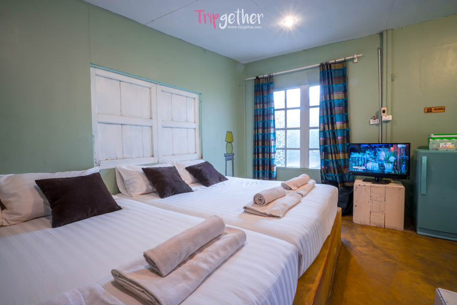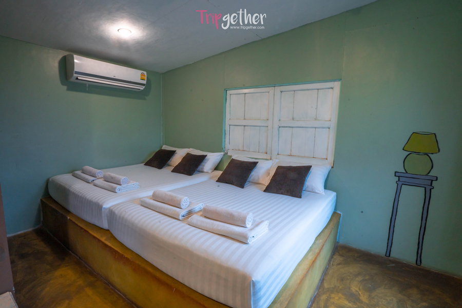 ห้อง Family สามารถนอนได้ 4 คน ภายในห้อง ทาสีเขียวสบายตา ซึ่งเหมาะกับครอบครัวหรือแก๊งเพื่อนสุดๆ สิ่งอำนวยความสะดวกครบครัน
