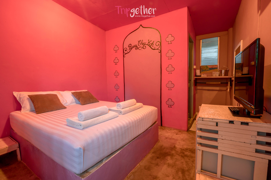 ฝั่งซ้ายจะมีห้องทั้งหมด 3 ห้อง โดยแบ่งเป็นห้อง Family 1 ห้อง ห้องพักสำหรับ 2 คน 2 ห้อง ภายในห้องตกแต่งด้วยสีชมพูสดใสสิ่งความสะดวกภายในครบครัน