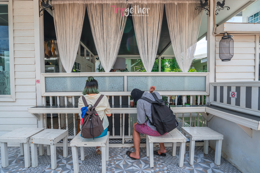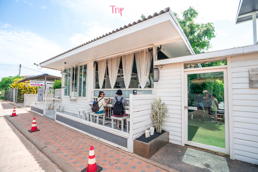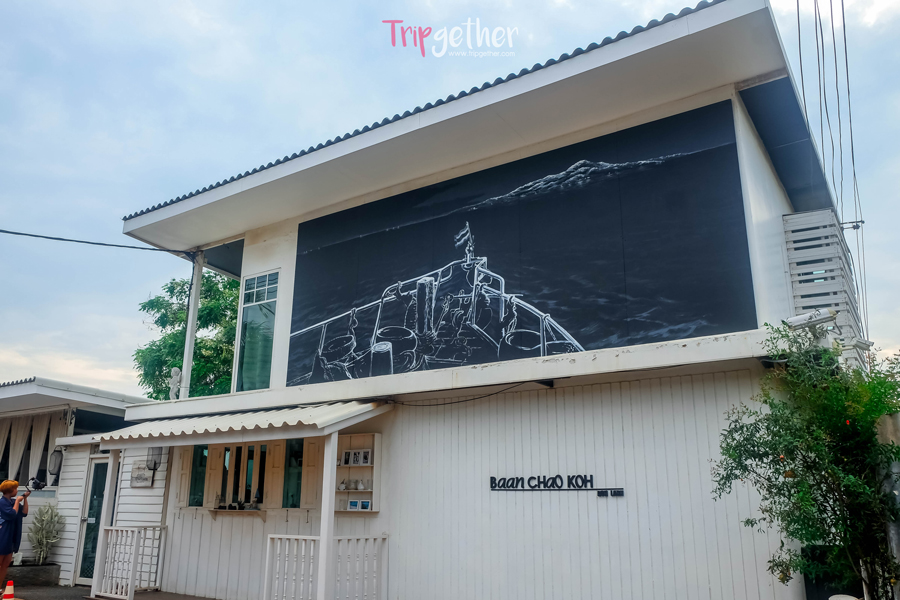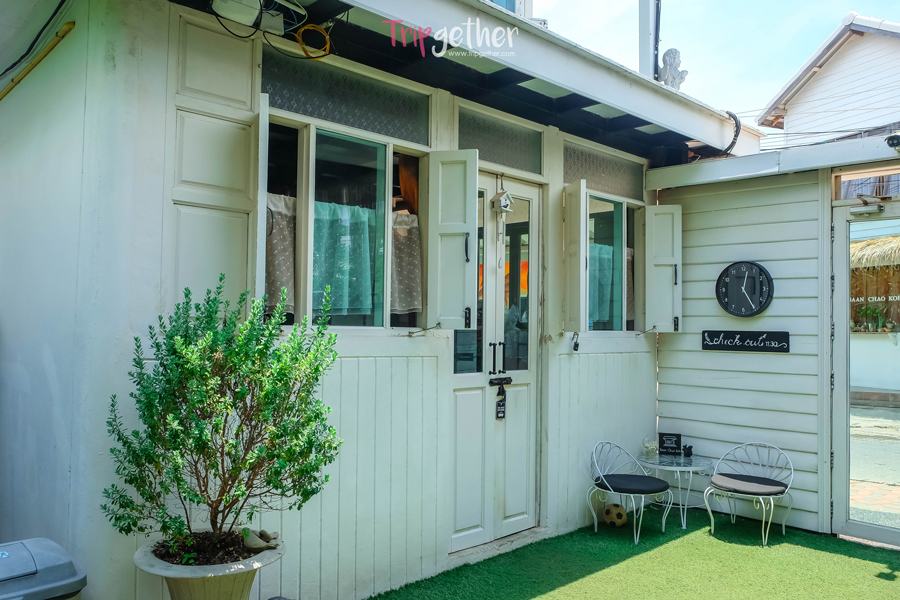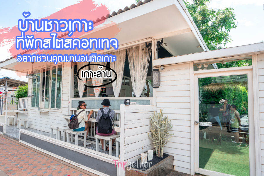 เมื่อมาถึงบ้านชาวเกาะ ก็จะเจอบ้านพักสีขาว 2 ฝั่งถนน ซึ่งด้านหน้าถูกตกแต่งไว้อย่างน่ารักเลยทีเดียว มีความวินเทจผสมกลิ่นอายคอทเทจนิดๆ ซึ่งมันเป็นส่วนผสมที่ลงตัวดูน่ารักละมุนไปหมดเลย มุมถ่ายรูปก็มีให้ถ่ายตั้งแต่ทางเข้ากันเลย ด้านหน้ายังมีคาเฟ่เล็กๆ ให้คุณได้สั่งเครื่องดื่มมาดื่มดับกระหายได้อีกด้วย