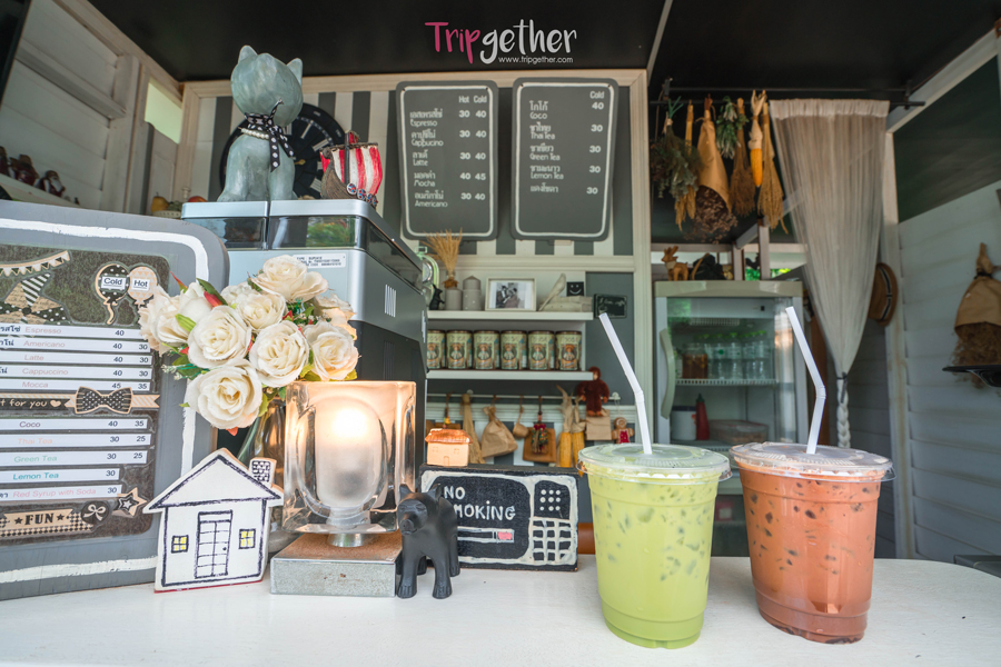 นอกจากนี้ที่บ้านชาวเกาะยังมี คาเฟ่เล็กๆ อยู่ด้านหน้าไว้คอยบริการ หากใครที่อยากดื่มเครื่องดื่มเย็นๆ ก็สามารถสั่งได้นะคะราคาก็ไม่แพง