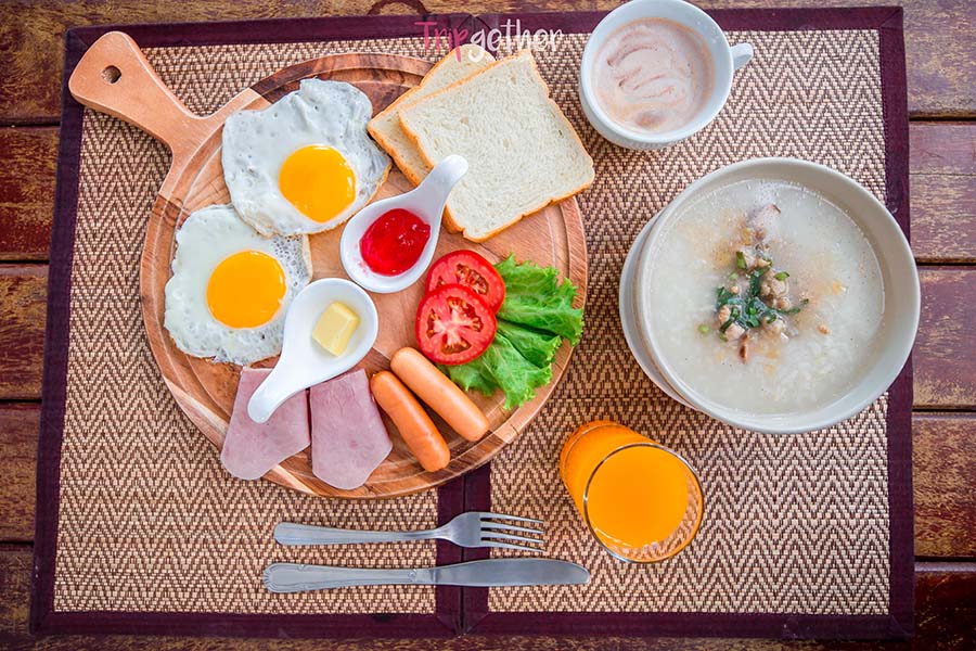 อาหารเช้าของที่นี่ก็จัดเต็มไปด้วยเซต Break Fast และข้าวต้มร้อนๆ ที่มาเติมพลังให้สดชื่น พร้อมลุยจุดเช็คอินสวยๆ ในเกาะล้านอีกเพียบ