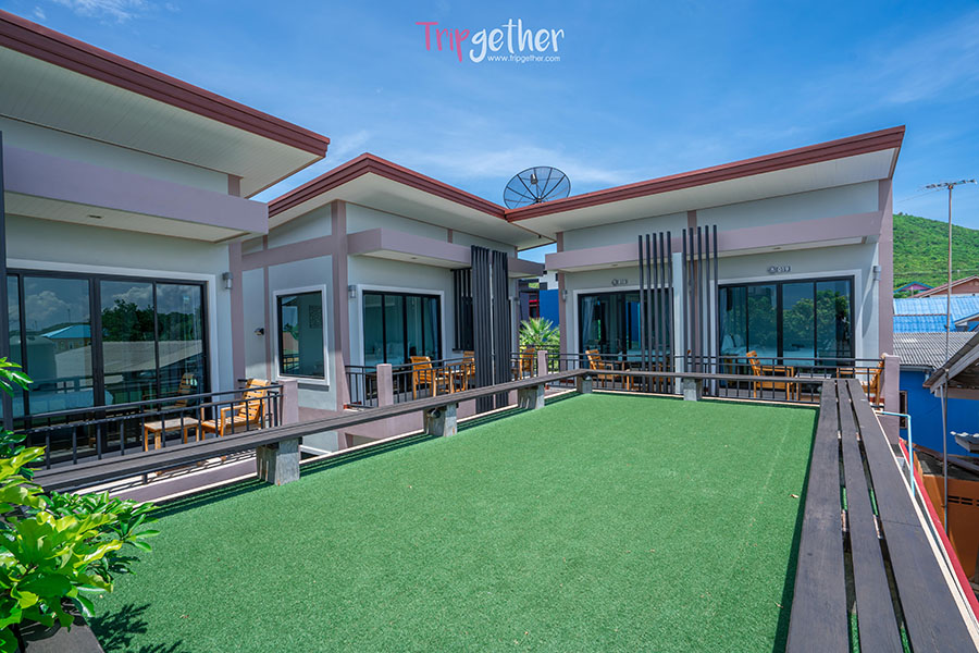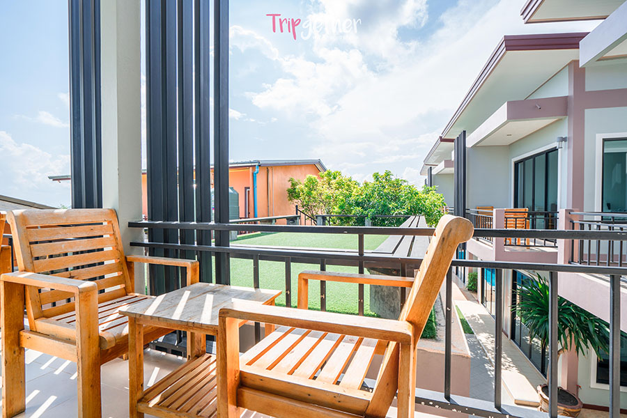 และยังมีระเบียงขนาดใหญ่ที่สามารถมาสูดอากาศของเกาะล้านหรือจะมาทำกิจกรรมร่วมกันมุมนี้ก็โรแมนติกสุดๆ