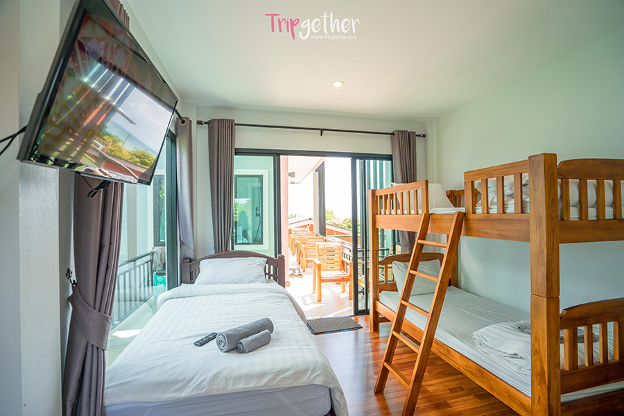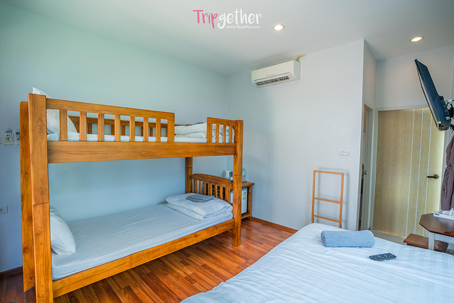และปิดท้ายกันที่ห้อง Tree bedrooms ที่มีเตียงทั้งหมด 3 เตียง เตียงเดี่ยว 1 เตียงและเตียงสองชั้นอีก 1 เตียง ภายในห้องยังคงตกแต่งแบบเรียบง่ายสบายตา เพื่อให้ผู้ที่เข้าพักได้ผ่อนคลาย แถมยังมีสิ่งอำนวยความสะดอกแบบครบครันอีกด้วย
