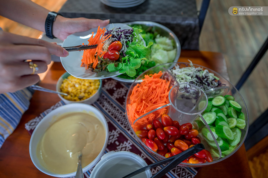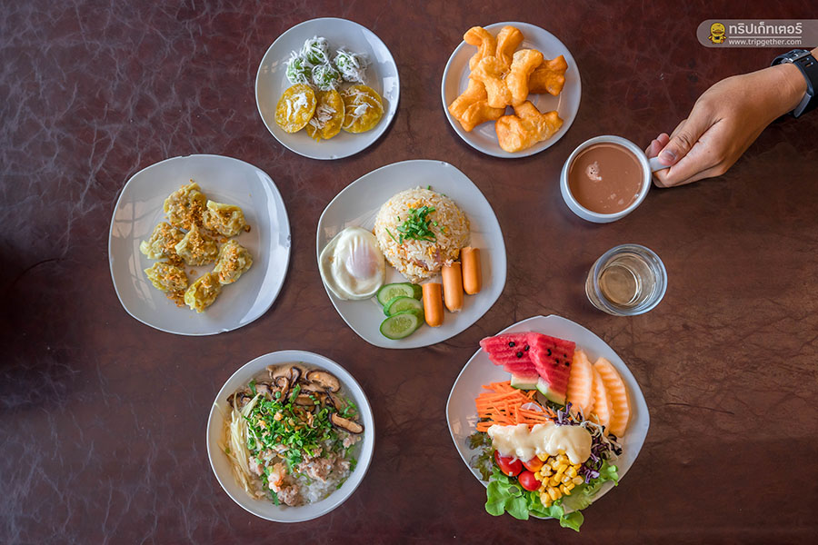 สำหรับอาหารเช้าก็เป็นแบบบุฟเฟ่ต์ให้เราได้จัดเต็มกันตั้งแต่ 07.30 – 09.00 น. ซึ่งมีเมนูมากมายให้เราเลือกกินได้อย่างตามใจชอบ และที่สำคัญทั้งอาหารคาว ขนม และของทานเล่น ทุกเมนูเป็นเมนูที่ทางรีสอร์ททำขึ้นเองแบบสดใหม่วันต่อวัน