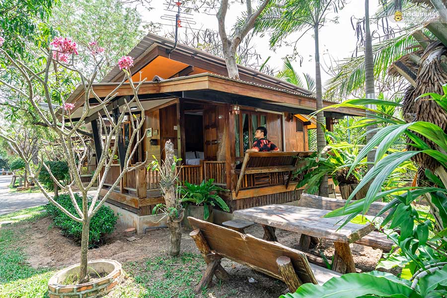 บรรยากาศรอบๆ เต็มไปด้วยต้นไม้สูงใหญ่ที่คอยให้ความร่มรื่น เหมาะสำหรับใครที่อยากมาพักผ่อนอย่างเต็มที่และต้องการความสโลว์ไลฟ์อย่างแท้จริง