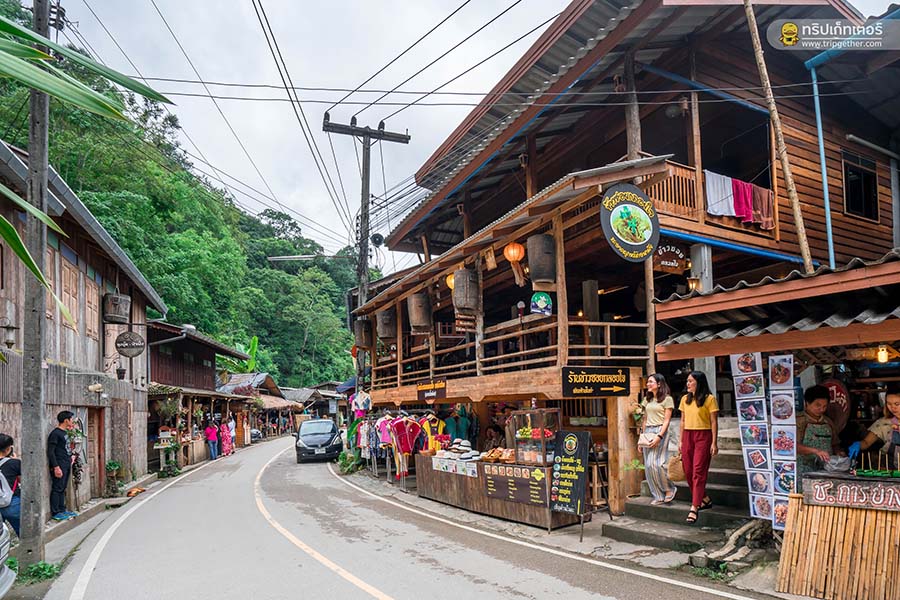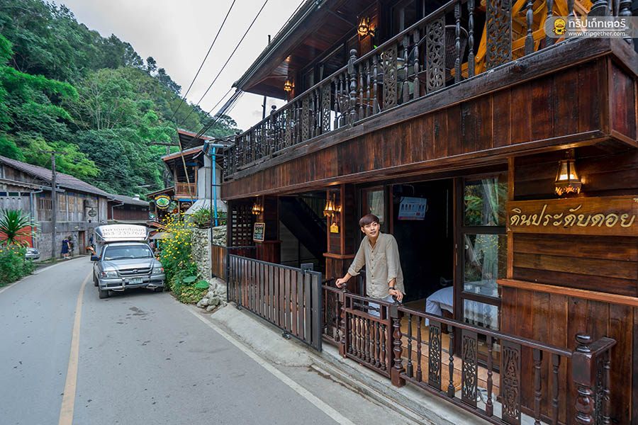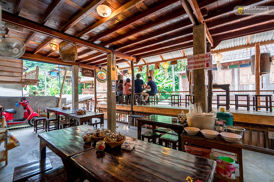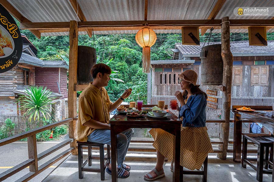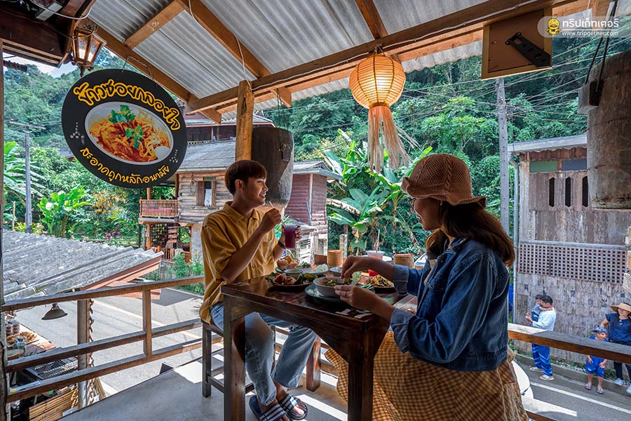 นั่งทานพร้อมชมบรรยากาศหมู่บ้านแม่กำปองแบบเพลินๆ