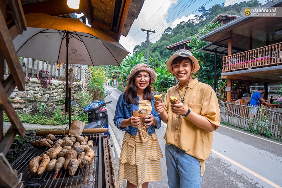และยังมีของทานเล่นอย่าง มันไข่หวานปิ้ง ที่มาถึงแม่กำปองแล้วต้องไม่พลาดที่จะลิ้มลอง