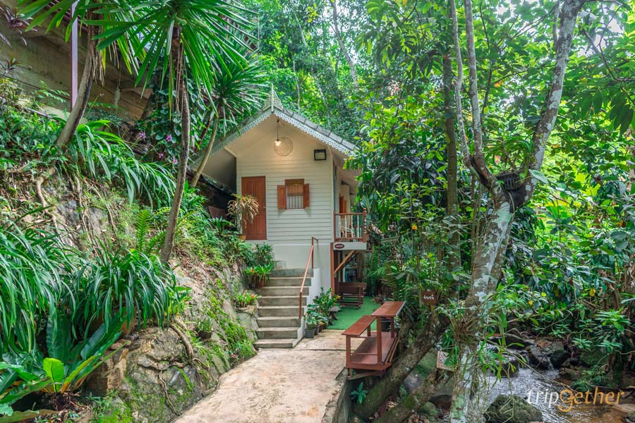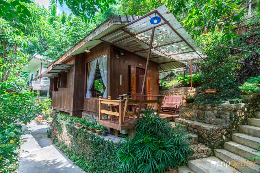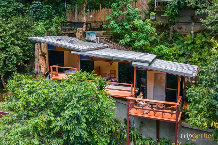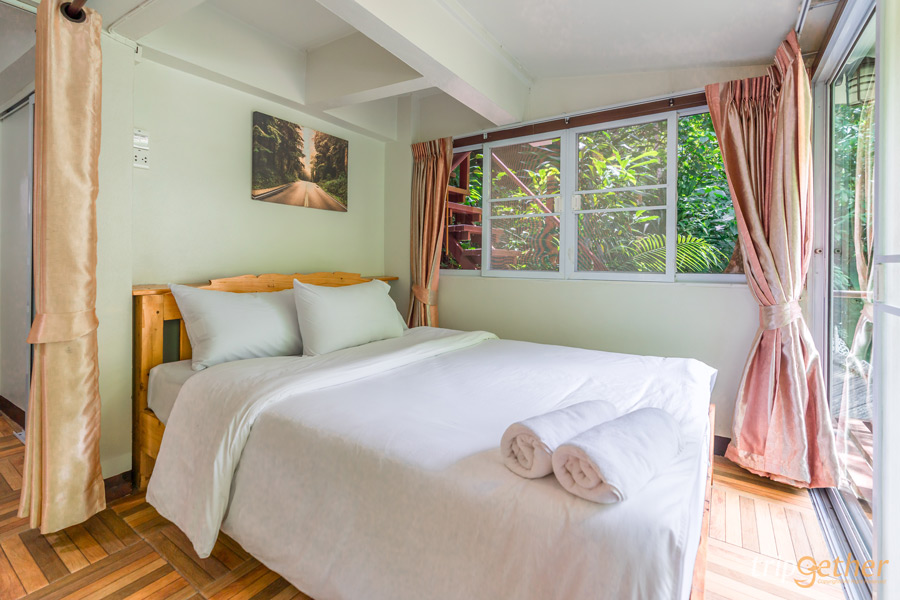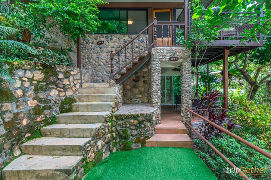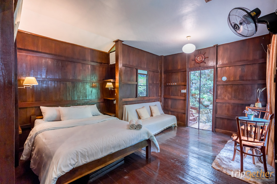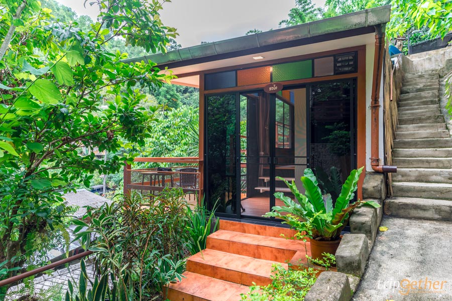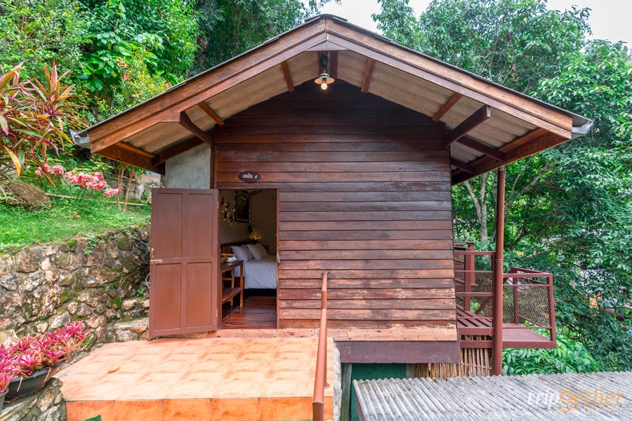 อีกหนึ่งห้องที่สงบ เหมาะสำหรับคนที่อยากใช้เวลาพักผ่อนแบบเป็นส่วนตัว นั่นก็คือ ห้องเพลิน 4 ที่ห้องแบบที่ 7 ตั้งอยู่ส่วนบนของเนินเขาให้ฟีลแบบบ้านไม้หลังเล็กๆ ที่สงบบนยอดเขา