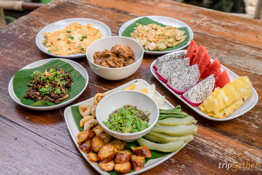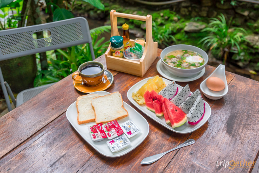 ในส่วนของอาหารได้รวมอยู่ในราคาห้องพักเรียบร้อยแล้ว และความพิเศษของที่นี่ก็คือไม่ได้มีแค่อาหารเช้านะ แต่ยังรวมอาหารเย็นไปด้วย แถมต้องบอกเลยว่าเมนูอาหารก็หลากหลายมาก เหมือนได้มากินข้าวฝีมือคุณแม่สุดๆ โดยเซ็ตอาหารเช้ามีทั้งข้าวต้มหมู ไข่ลวก ขนมปังปิ้ง กาแฟ รวมทั้งผลไม้ตามฤดูกาล