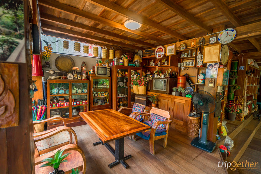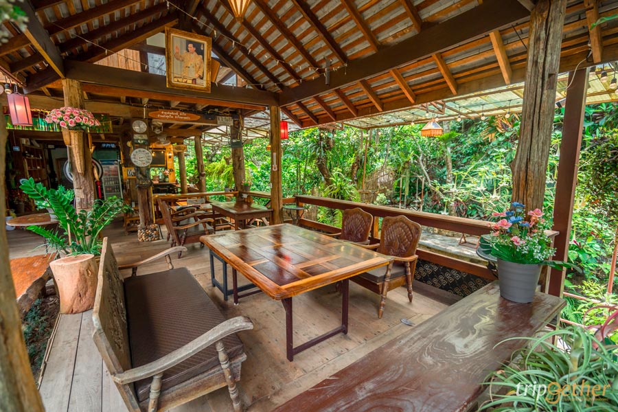 ดูห้องพักทั้ง 7 แบบกันไปเรียบร้อยแล้ว เราก็มาดูในส่วนของห้องอาหารกันต่อ ต้องบอกเลยว่าห้องอาหารของบ้านพักเพลิน บรรยากาศดีแบบสุดๆ เพราะนอกจากจะเน้นเป็นอาคารไม้แบบเปิดโล่งแล้ว ยังตั้งอยู่ติดริมน้ำอีกด้วย โซนที่นั่งก็มีให้เลือกเยอะมาก ทั้งในอาคารที่ตกแต่งให้กลิ่นอายแบบวินเทจสุดคลาสสิก