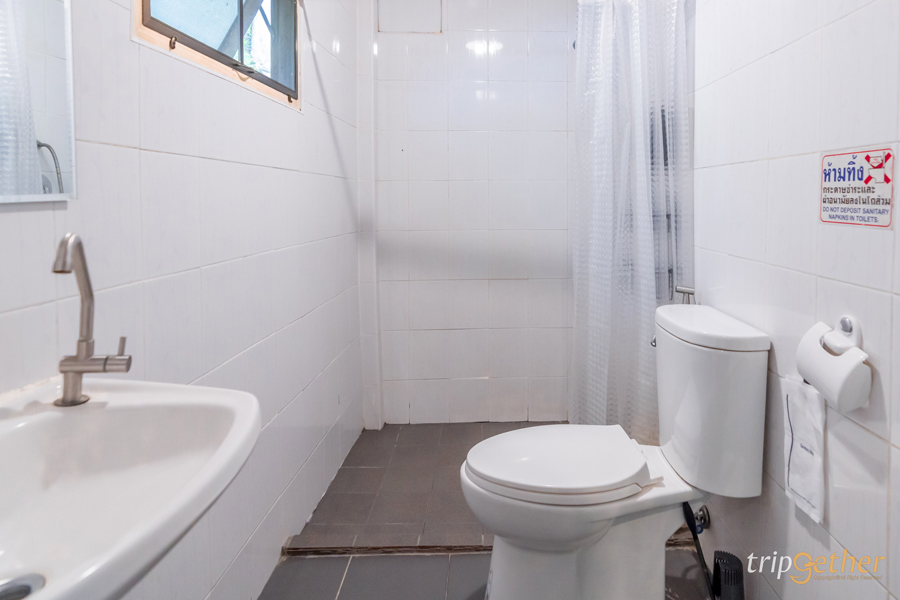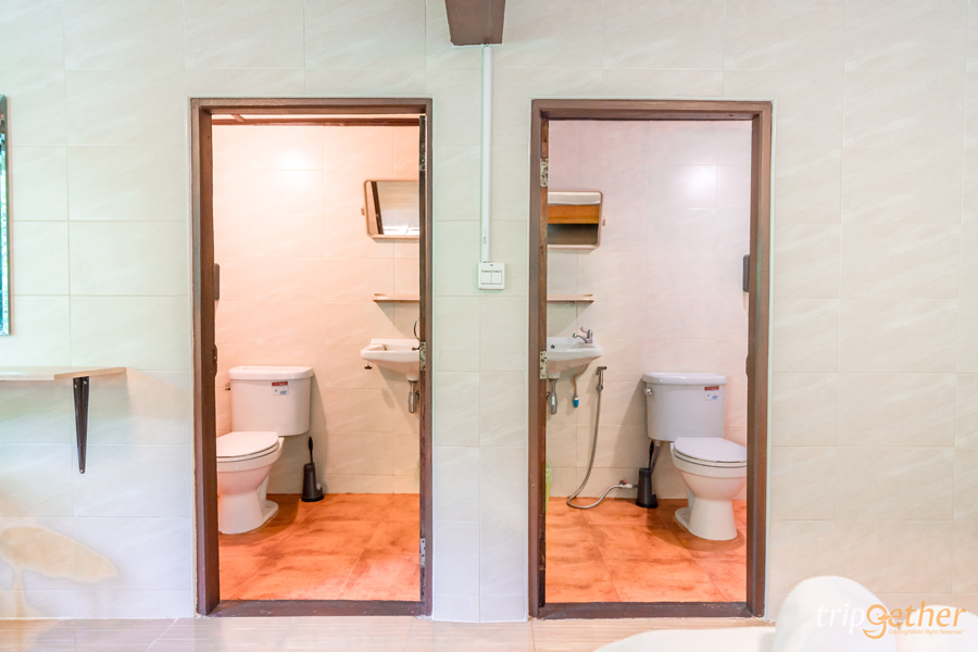 ถึงจะพักได้หลายคน แต่ก็ไม่ต้องกังวลเรื่องห้องน้ำเลย เพราะห้องเพลิน 2 มีห้องน้ำอยู่ 2 ห้อง พร้อมกับสิ่งอำนวยความสะดวกอื่นๆ ครบ บอกเลยว่ายกแก๊งค์มาก็นอนได้สบายๆ