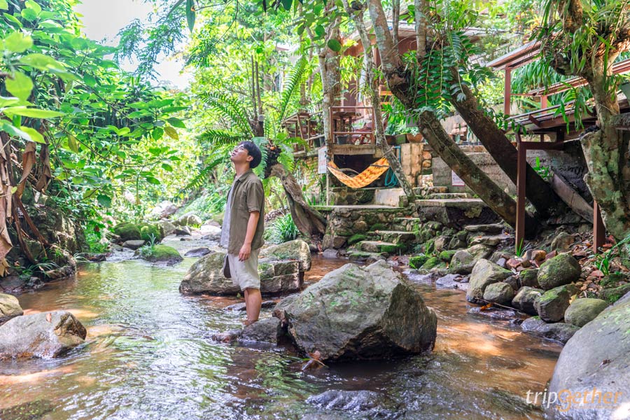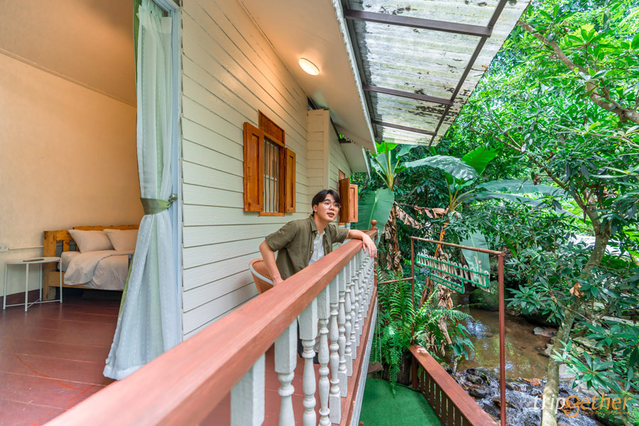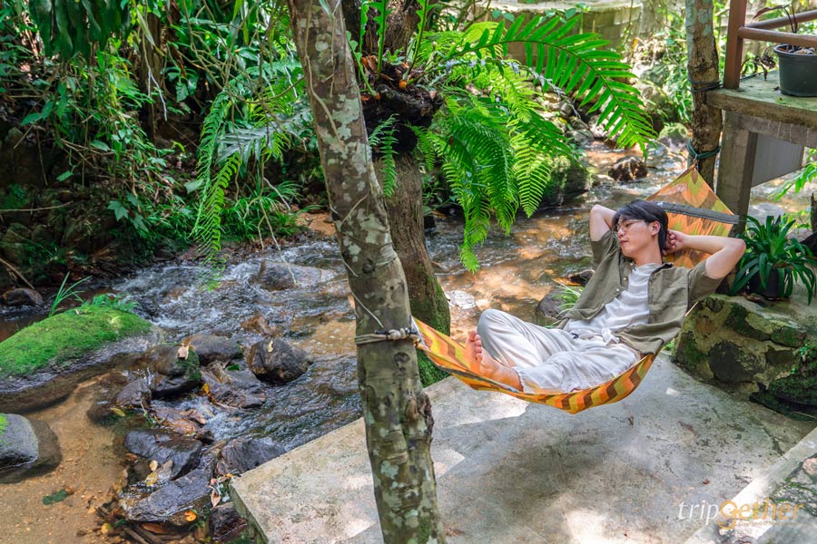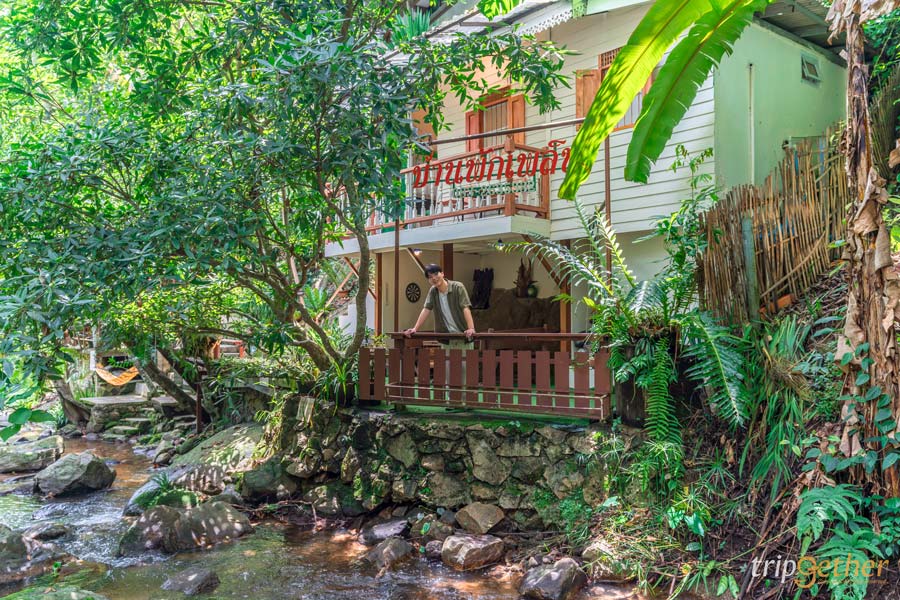 มาพักผ่อนที่บ้านพักเพลิน ทั้งทีต้องไม่พลาดที่จะเอาเท้าแช่น้ำ โพสท่าสวยๆ กลางลำธารที่ทั้งใสและเย็นฉ่ำ ปล่อยเวลาให้ไหลไปช้าๆ ฟังเสียงน้ำ เสียงธรรมชาติกันแบบให้เต็มอิ่ม