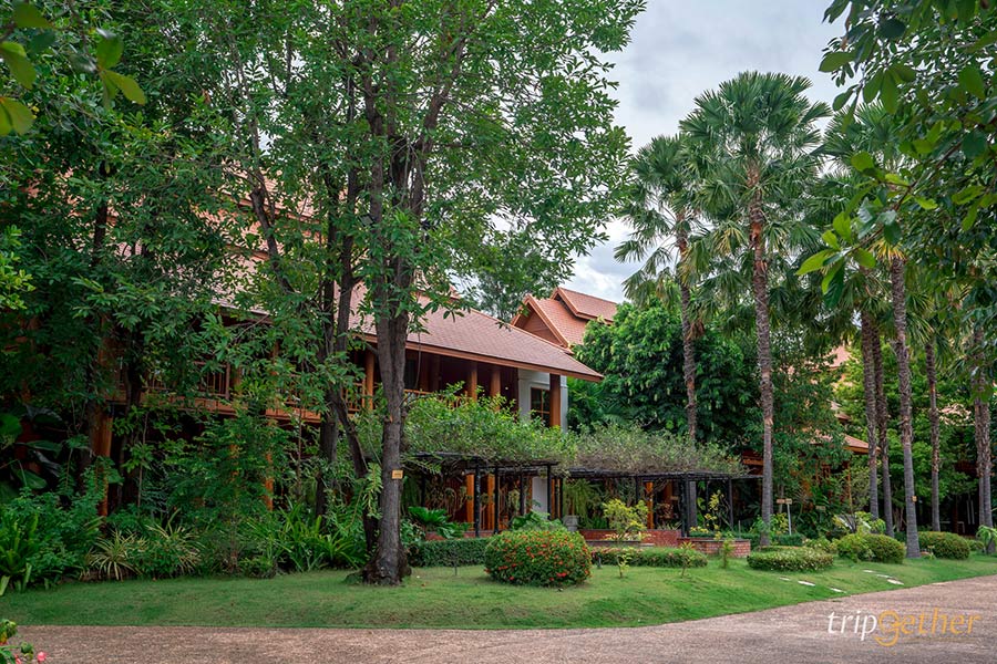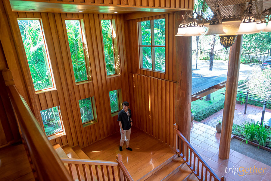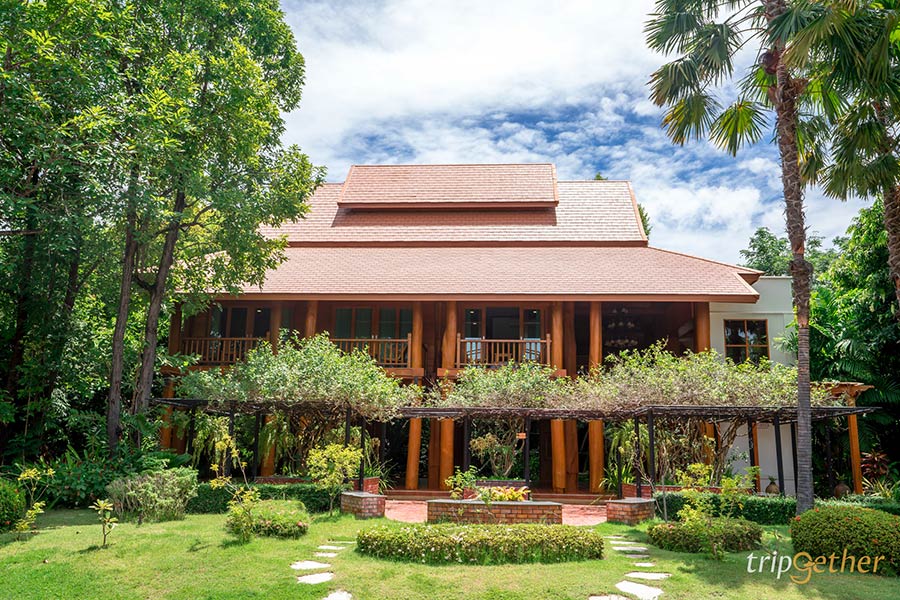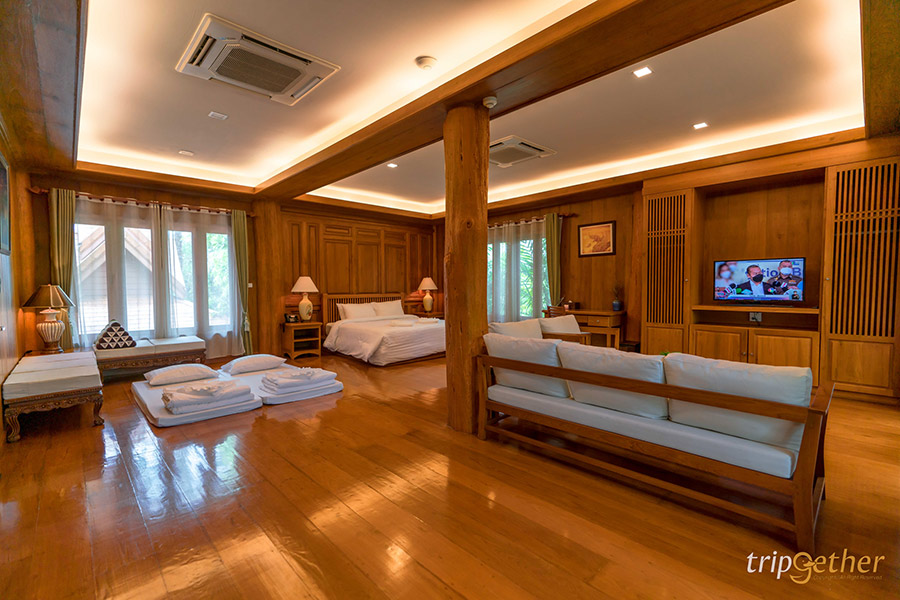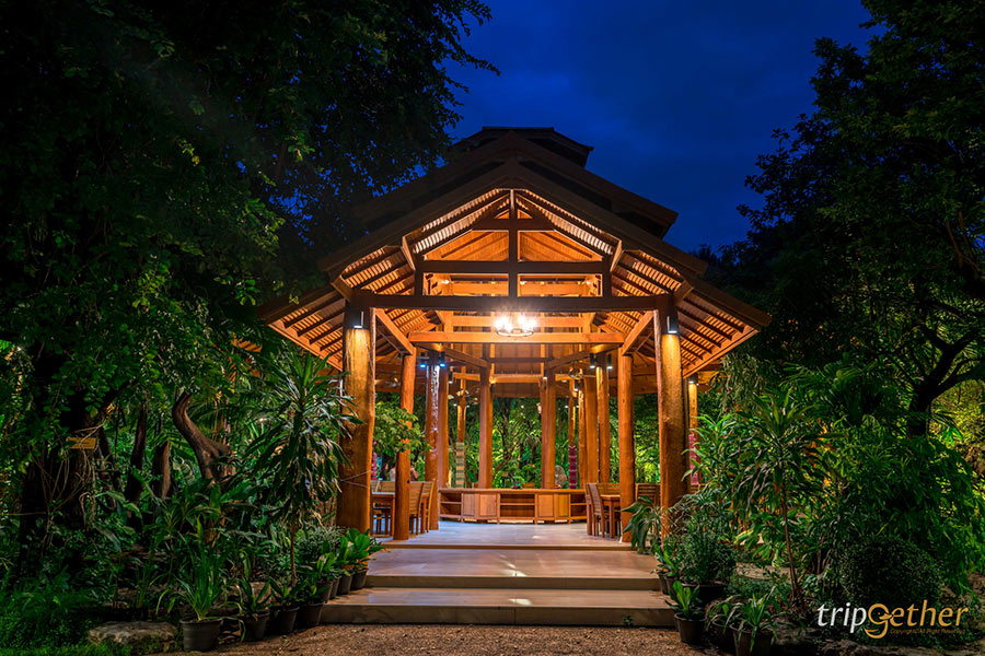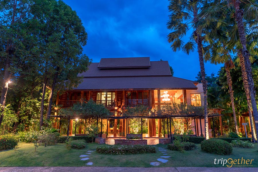 บรรยากาศยามค่ำคืนของที่พักก็โรแมนติกสุดๆ ประดับประดาไปด้วยไฟสีส้ม พอส่องแสงสะท้อนกับเรือนไม้สักสีทอง ทำให้ที่นี่ดูสวยงามยิ่งขึ้นไปอีก ที่นี่รับจัดงานอีเว้นท์ต่างๆ ด้วยนะ เช่น งานสัมมนา งานแต่ง ใครสนใจก็ติดต่อที่พักมาได้เลย