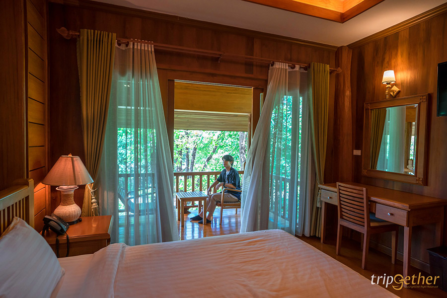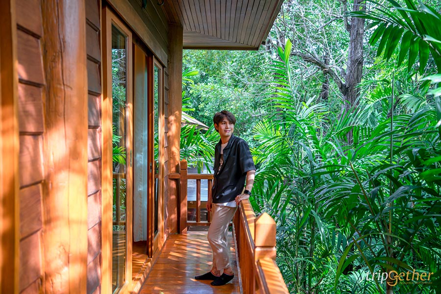 มีมุมระเบียงหน้าห้องให้นั่งพักผ่อนหย่อนใจ ชมวิวธรรมชาติแบบเพลินๆ