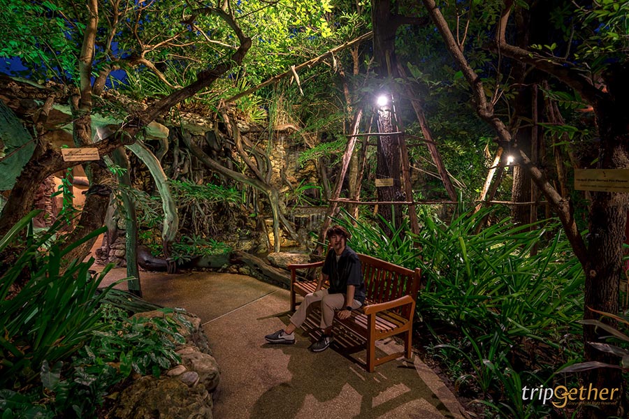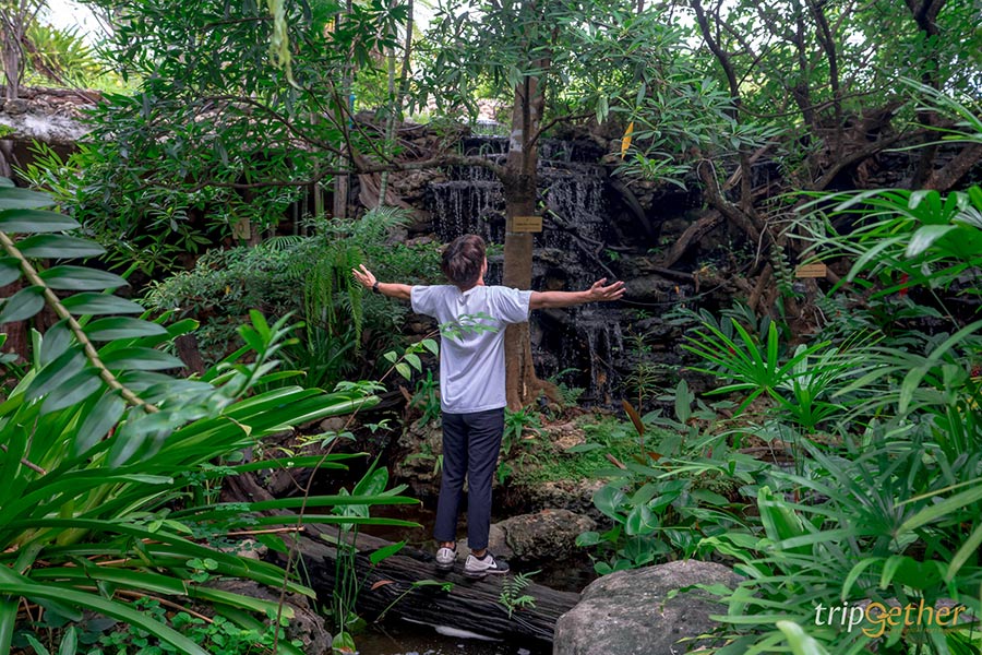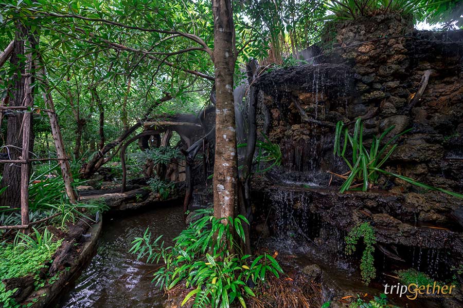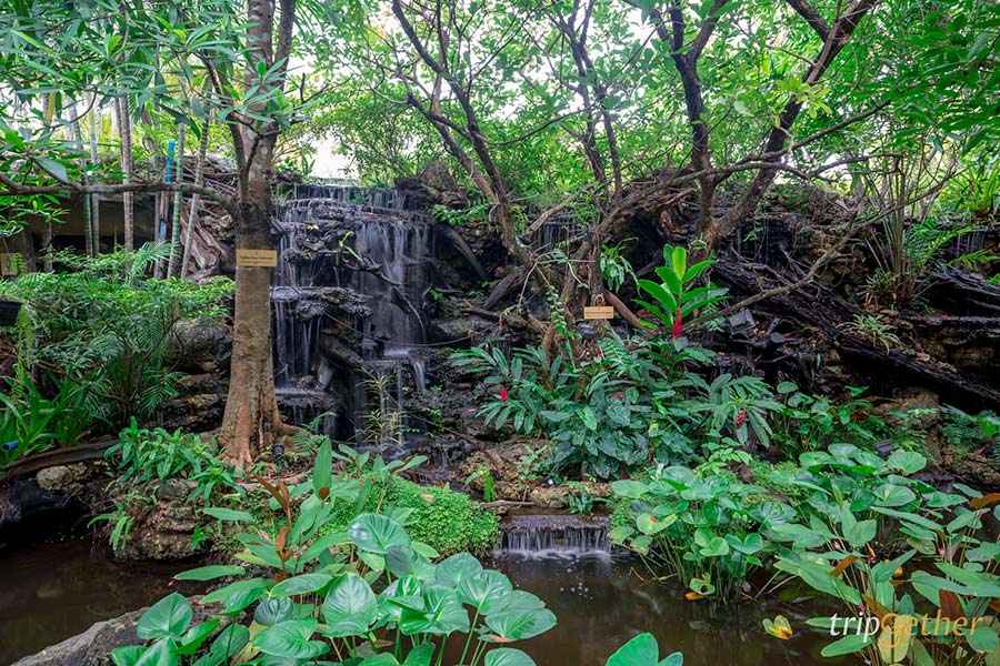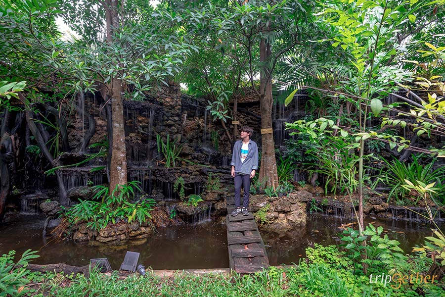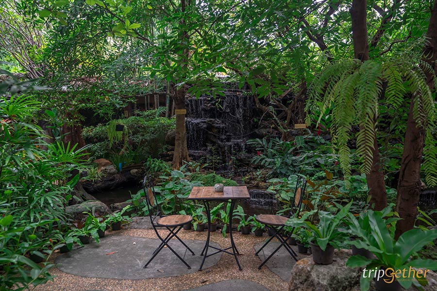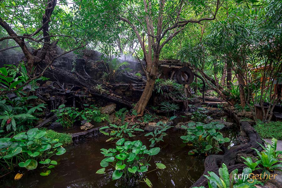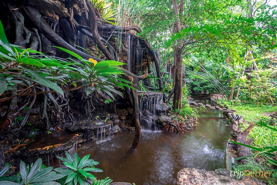 บริเวณด้านหลังล็อบบี้ขนาบข้างไปด้วยสวนสวยเขียวขจี ตกแต่งเป็นบรรยากาศป่าเขา มีมุมไฮไลท์เป็นน้ำตกจำลองขนาดใหญ่ สามารถเดินเล่นถ่ายรูปได้ทั่วบริเวณ