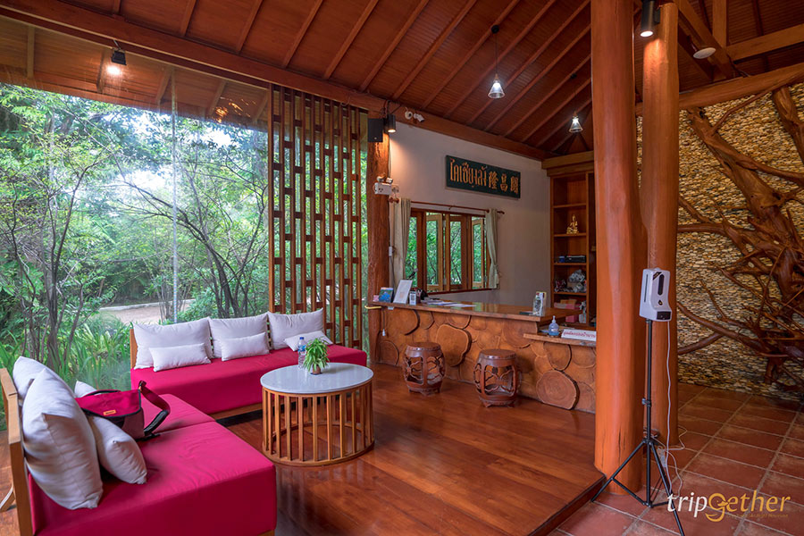 ตัวอาคารดีไซน์มาในสไตล์ไทยโมเดิร์น ออกแบบอย่างประณีตงดงามเข้ากับบรรยากาศรอบๆ มาก สามารถจอดรถได้ที่บริเวณหน้าบ้านเลย พอเดินเข้ามาเราก็จะพบกับบริเวณล็อบบี้เป็นอย่างแรก ตัวล็อบบี้กว้างขวางโปร่งสบาย ตกแต่งมีกลิ่นอายล้านนาเบาๆ นั่งเล่นชิลล์ๆ ระหว่างรอเช็คอินได้เลย