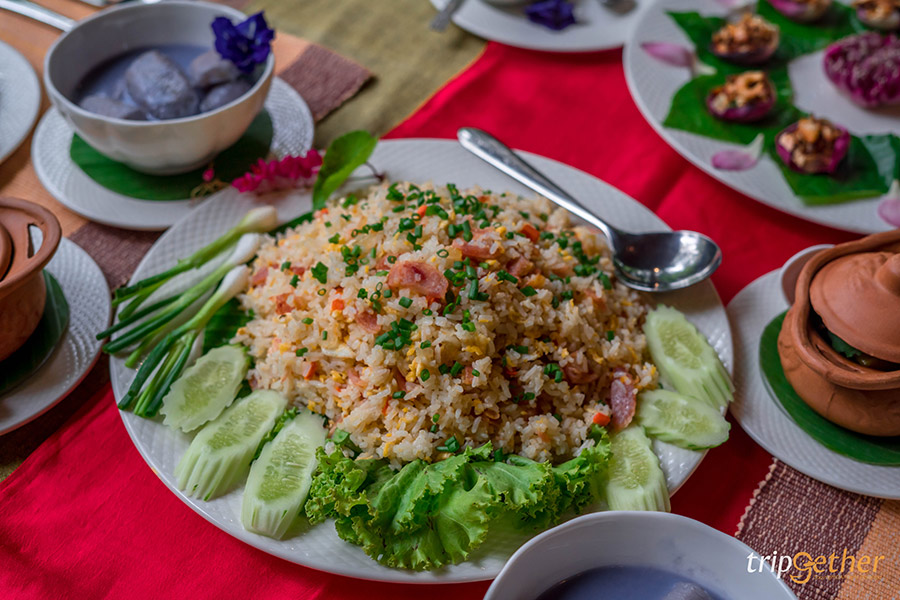 เริ่มกันที่เมนูแรก นั่นก็คือ ข้าวผัดกุนเชียง ข้าวสวยร้อนๆ ผัดปรุงรสคลุกเคล้ากับกุนเชียง กินแล้วเข้ากันสุดๆ จานนี้ราคา 200 บาท