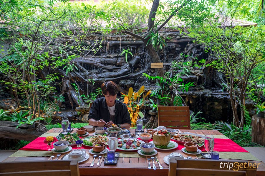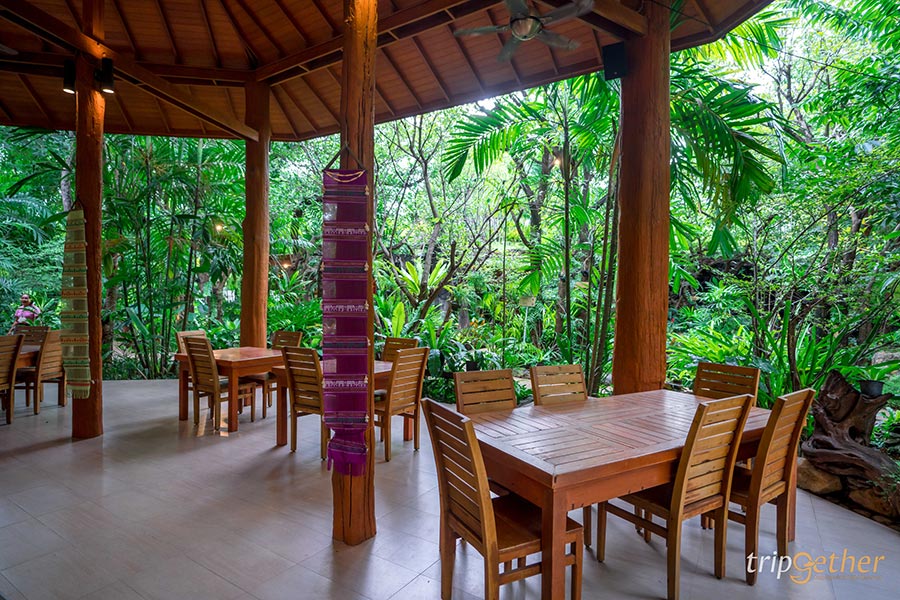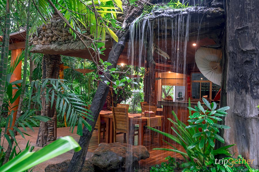 ตัวร้านเป็นอาคารเปิดโล่ง ให้ได้รับลมเย็นๆ จากธรรมชาติอย่างเต็มที่ มองไปทางไหนก็เจอแต่ความเขียวขจีจากแมกไม้ต่างๆ นั่งกินข้าวพร้อมฟังเสียงน้ำตกไปเพลินๆ บอกเลยว่าฟีลดีสุดๆ