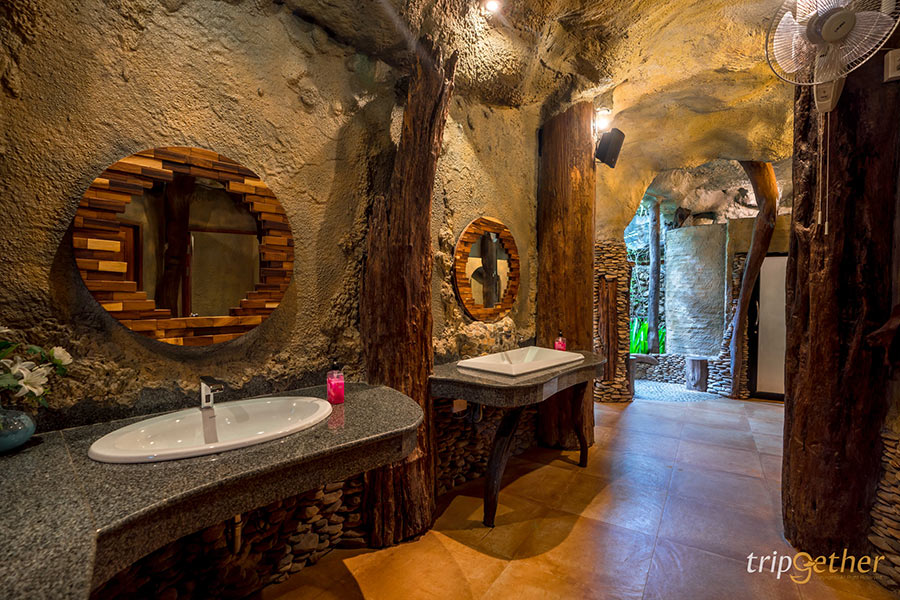 บริเวณสวนมีห้องน้ำส่วนกลางของที่พัก ซึ่งตกแต่งได้สวยงามอลังการมาก เข้ากับบรรยากาศรอบๆ สุด