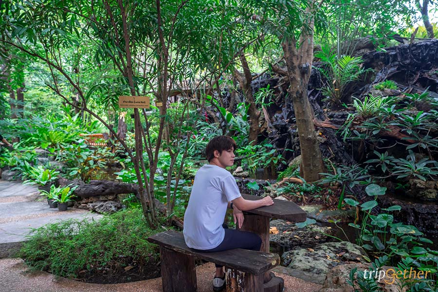 บรรยากาศร่มรื่นมากๆ มีมุมที่นั่งให้นั่งพักผ่อนในสวนแบบชิลล์ๆ ด้วย