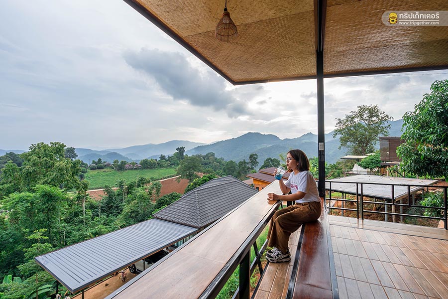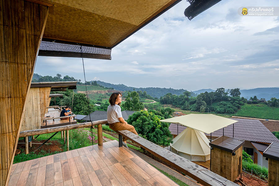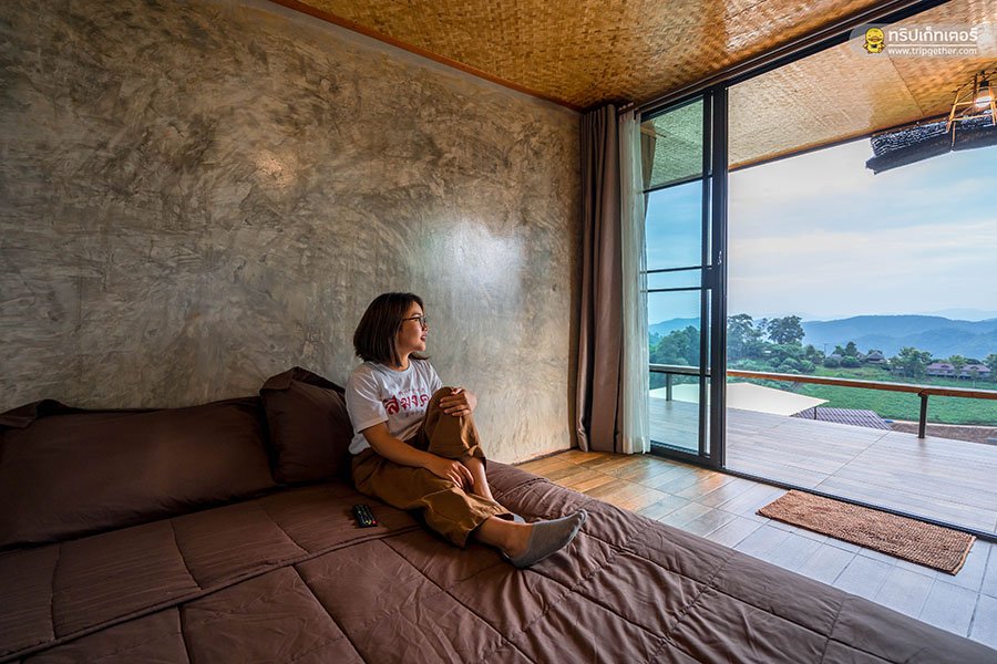 มาเริ่มต้นกันที่ บ้านชมวิว ตัวบ้านถูกดีไซน์ด้วยสไตล์โมเดิร์นตกแต่งด้วยวัสดุจากธรรมชาติอย่างไม้ไผ่และเน้นการใช้สีน้ำตาลเพื่อให้ผู้เข้าพักได้เข้าถึงธรรมชาติมากที่สุด และที่สำคัญบ้านทุกหลังหันหน้าออกสู่วิวธรรมชาติซึ่งสามารถมองเห็นวิวได้หลายยอดดอย ถ้าวันไหนฟ้าเปิดยังสามารถมองเห็นไปได้ไกลถึงดอยม่อนแจ่มเลยทีเดียว