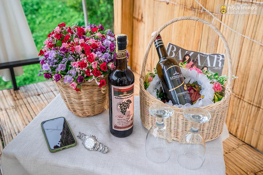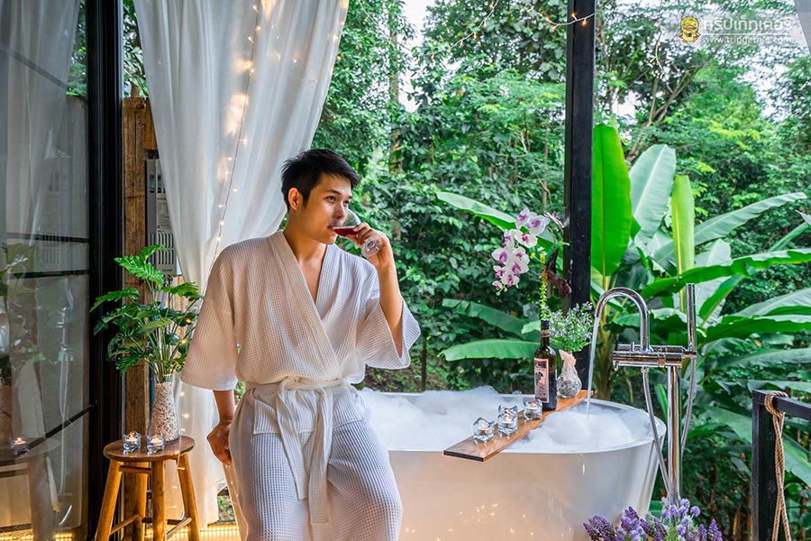 รอบๆ โซนอ่างอาบน้ำยังมีพร็อพต่างๆ ที่จัดเตรียมไว้อย่างสวยงาม มุมนี้ถ่ายรูปสวย เรียกยอดไลค์ได้แบบปังๆ อย่างแน่นอน หรือจะสั่งไวน์ผลไม้มาจิบไปแช่อ่างไปก็ฟินไม่น้อย