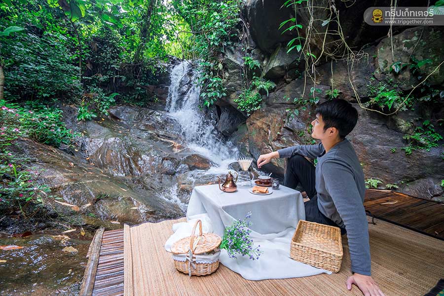 หรือใครที่เป็นคอกาแฟก็ยังสามารถสั่ง เซ็ตดริปกาแฟ มาดริปกันแบบสดๆ ถ้าหากดริปที่โซนอาหาร ราคา 80 บาท เสิร์ฟถึงหน้าห้อง 100 บาท หรือจะยกลงไปดริปริมน้ำตกก็บรรยากาศดีสุดๆ แน่เป็นอีกหนึ่งมุมถ่ายรูปที่หาจากที่ไหนไม่ได้แน่นอน