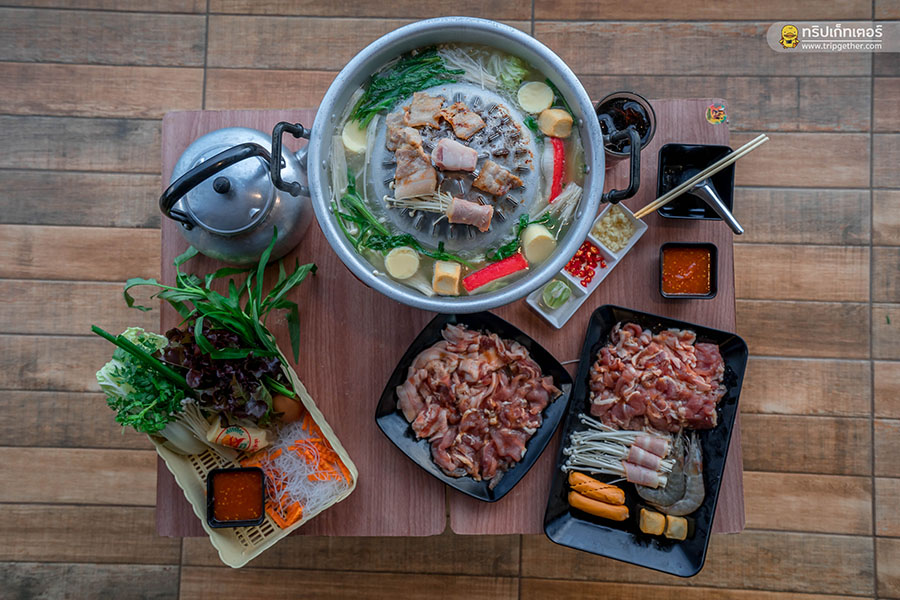 หมูกระทะเซ็ตละ 399 บาท มีให้พร้อมทั้งเตา น้ำจิ้ม และผักสดๆ หรือใครที่อยากเพิ่มหมูก็สามารถเพิ่มได้ในราคา 100 บาท สำหรับใครที่อยากนำอาหารมาทำเองก็ยังสามารถซื้อมาเองได้อีกด้วย